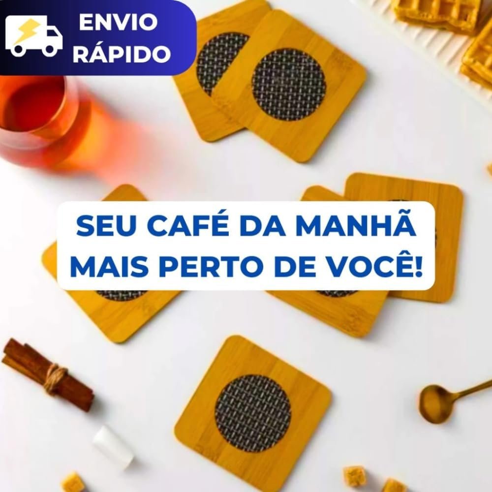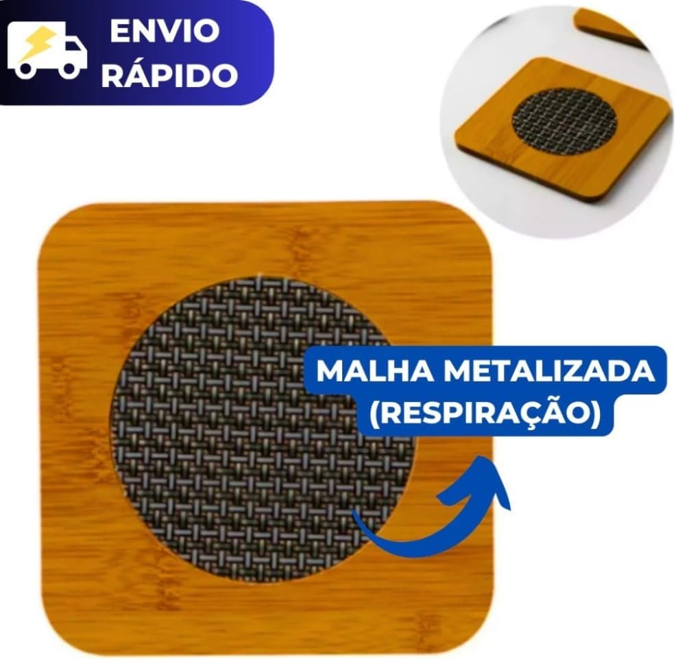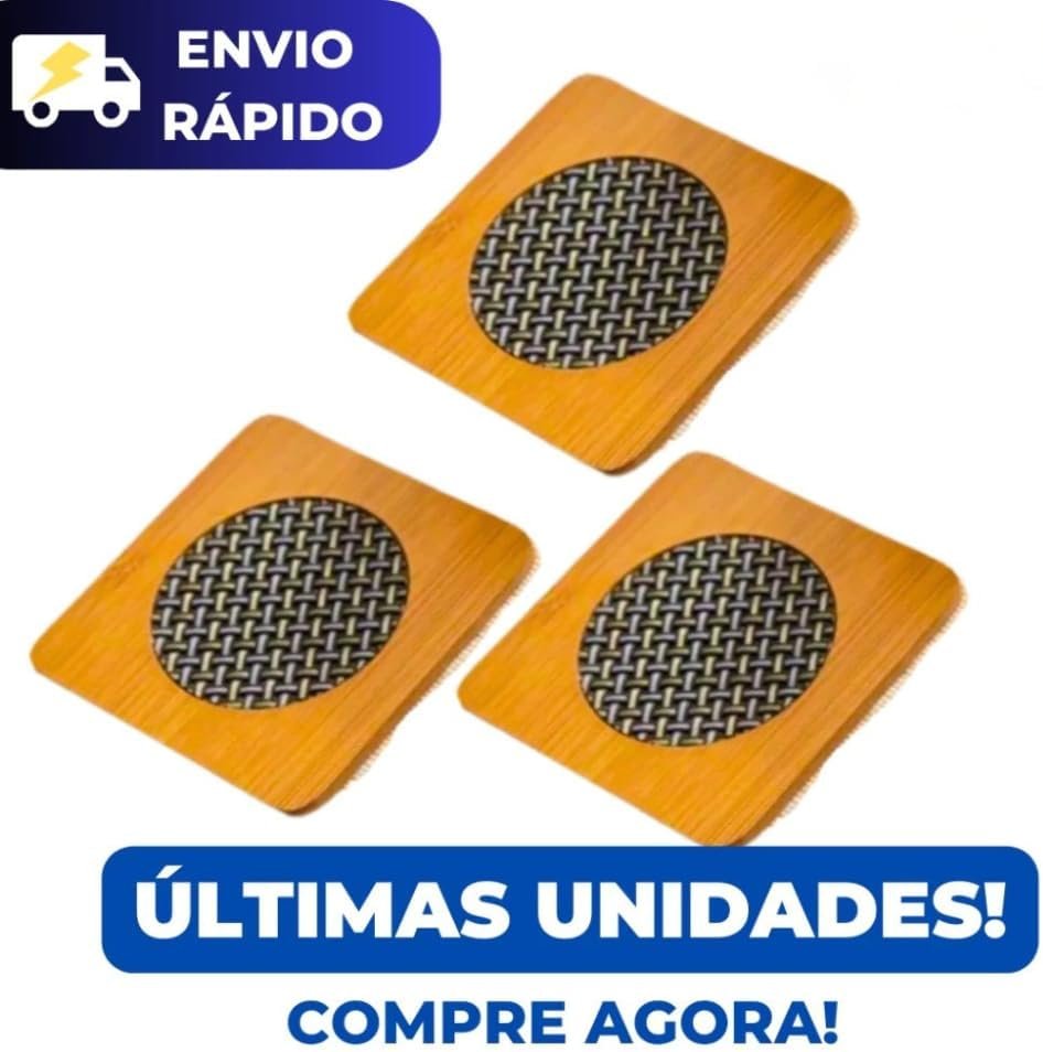 Descanso de Panela em Bambu com Centro Inox, Design Quadrado e Redondo, Kit com 3 Peças (Quadrado)