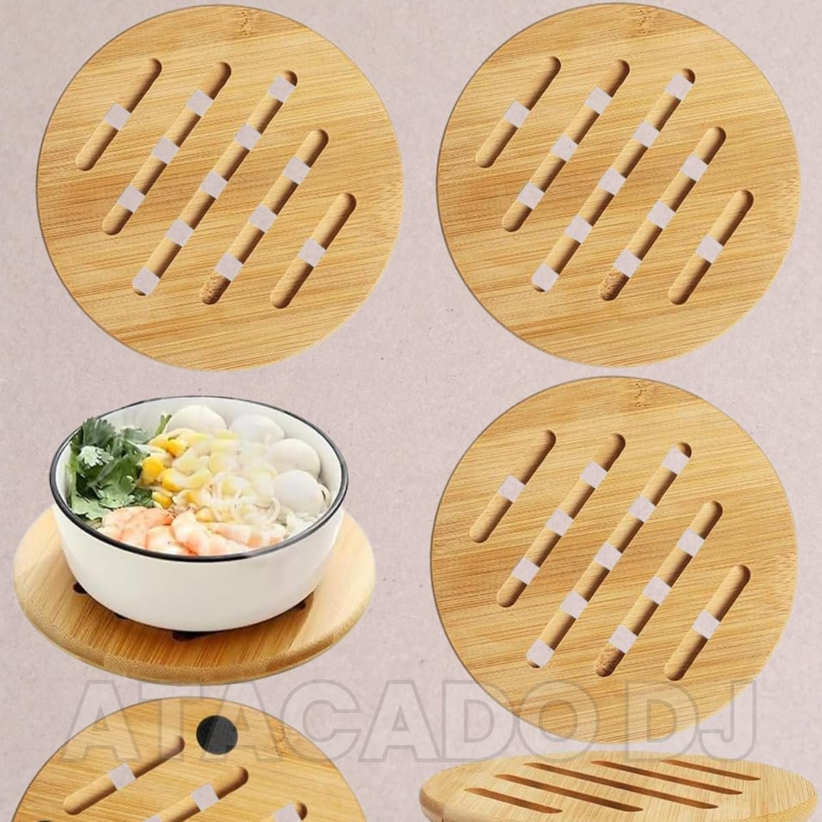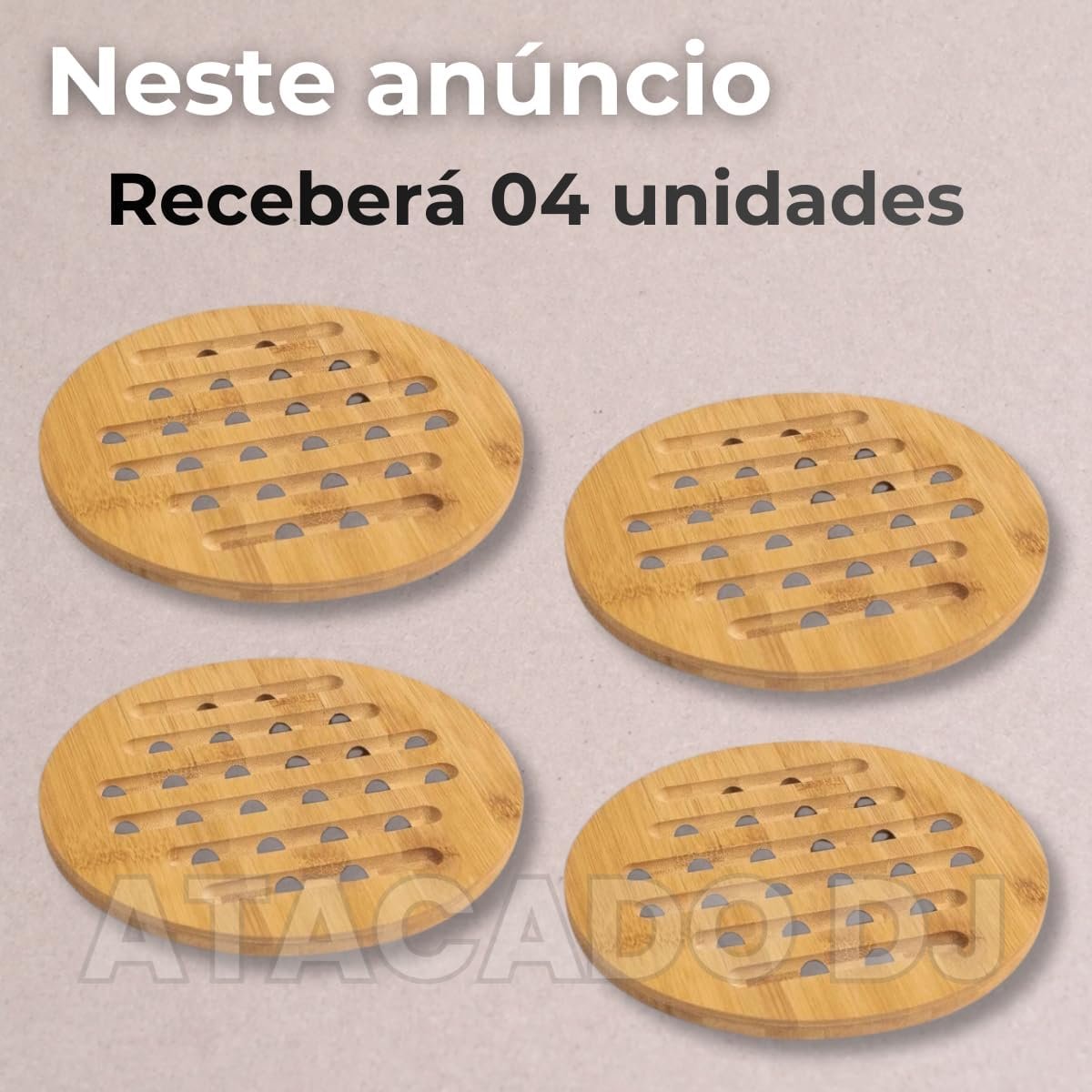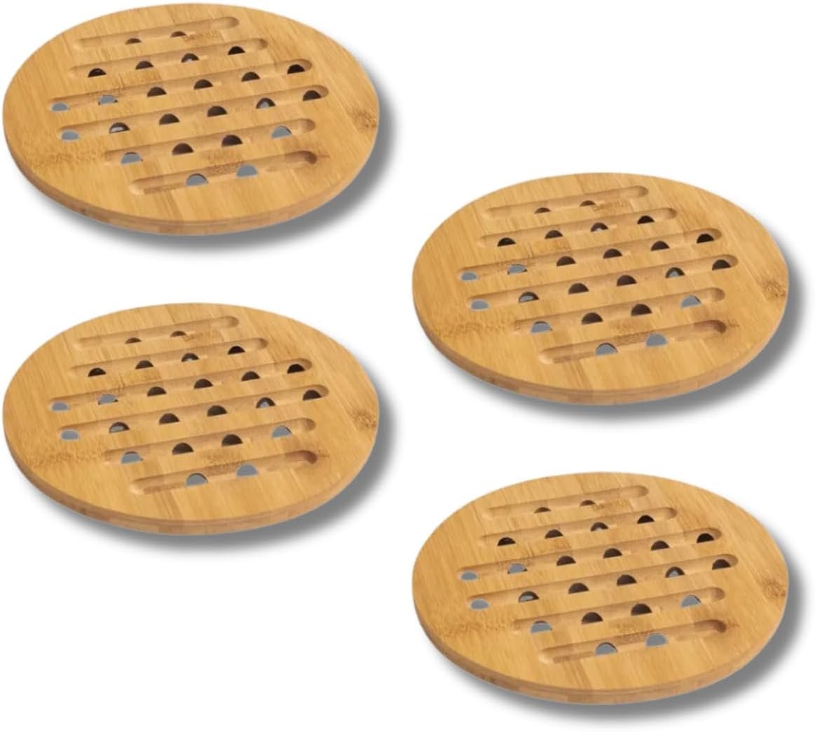 Descanso de Panela em Bambu Redondo 17cm, Base Térmica Antitérmica, Resistente ao Calor, Ecológico e Antiderrapante, 4 Unidades