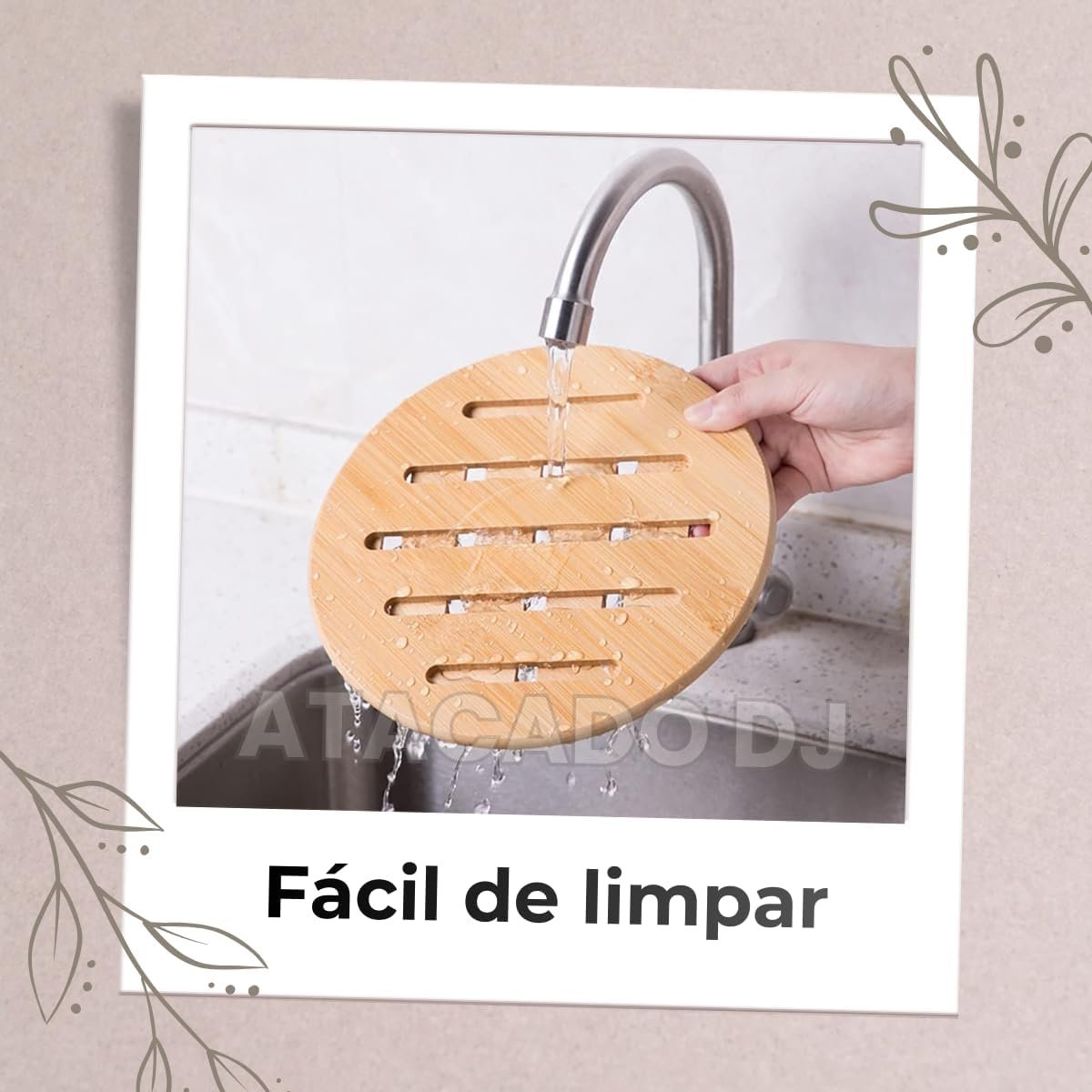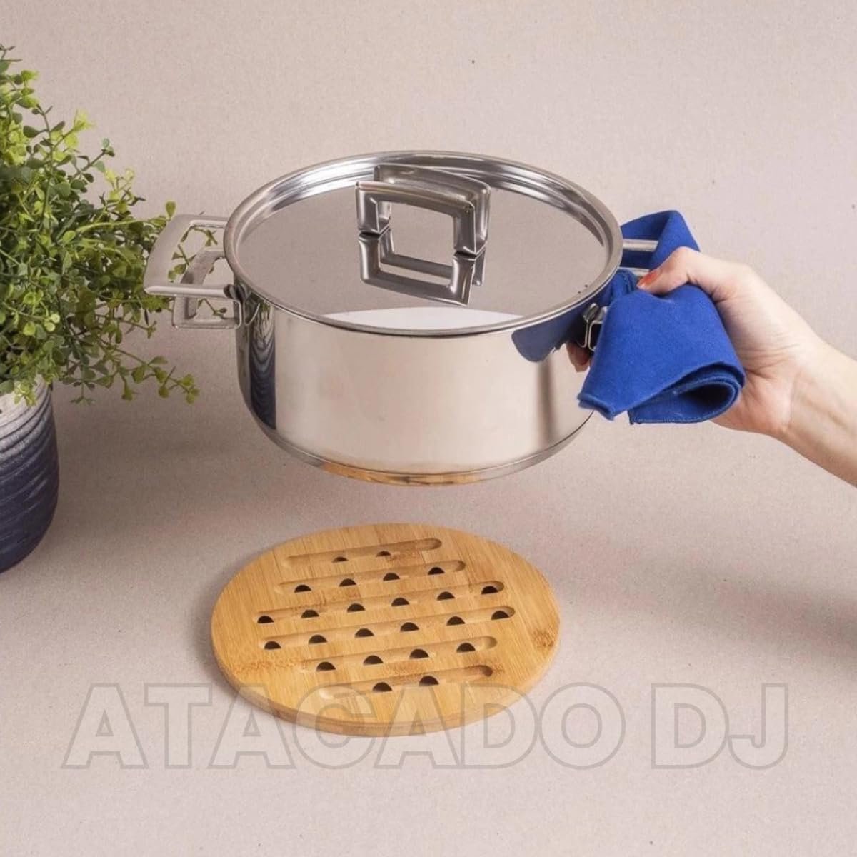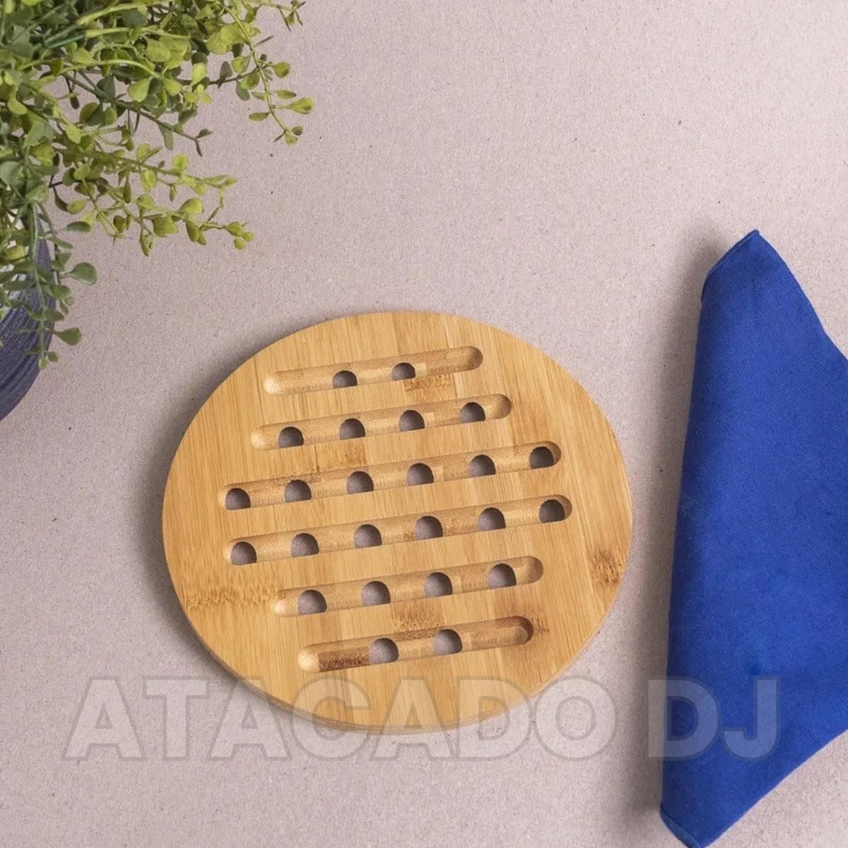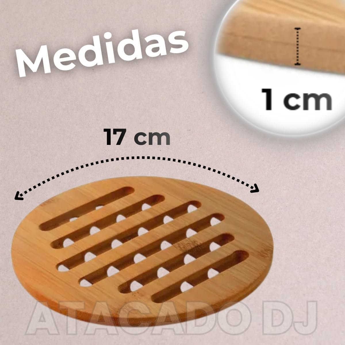 Descanso de Panela em Bambu Redondo 17cm, Base Térmica Antitérmica, Resistente ao Calor, Ecológico e Antiderrapante, 4 Unidades