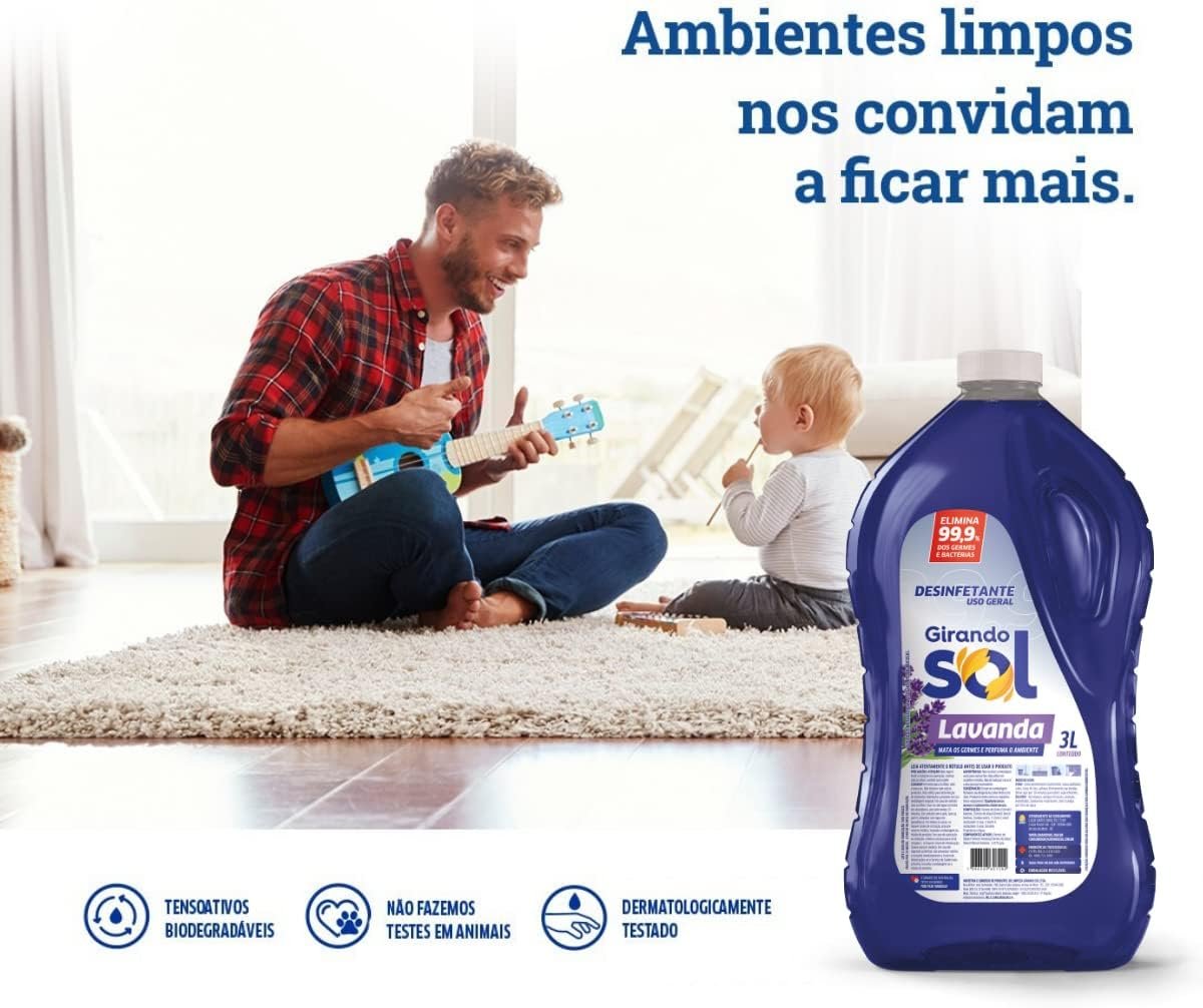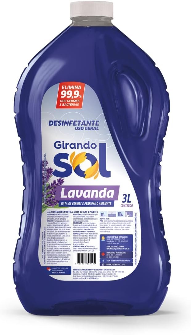 O Desinfetante Lavanda Girando Sol 3L é a solução ideal para manter a sua casa limpa e livre de germes. Com uma fragrância suave de lavanda, proporciona não apenas limpeza, mas também um ambiente fresco e agradável. Sua fórmula concentrada garante eficácia na eliminação de bactérias e vírus, mantendo a sua família protegida. Com o Desinfetante Girando Sol, você terá praticidade, economia e segurança em um único produto. Aproveite a qualidade Girando Sol e garanta a higienização completa do seu lar!
