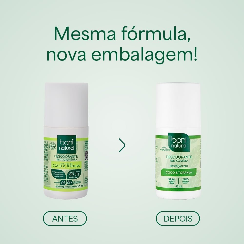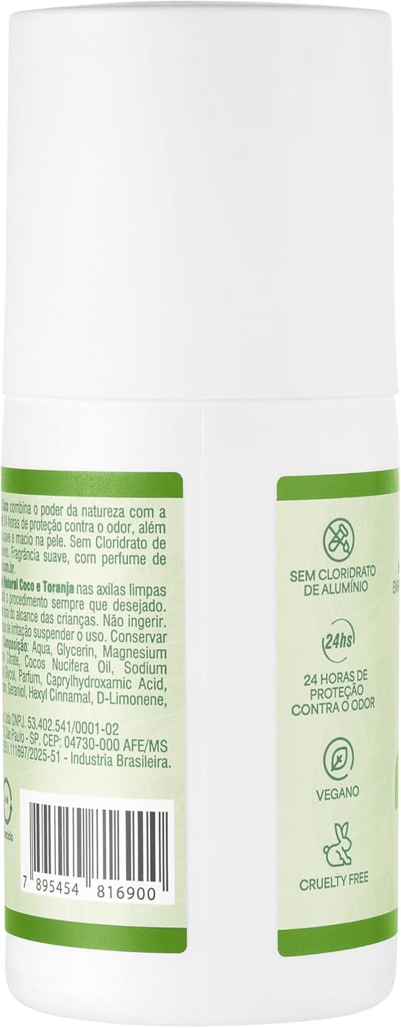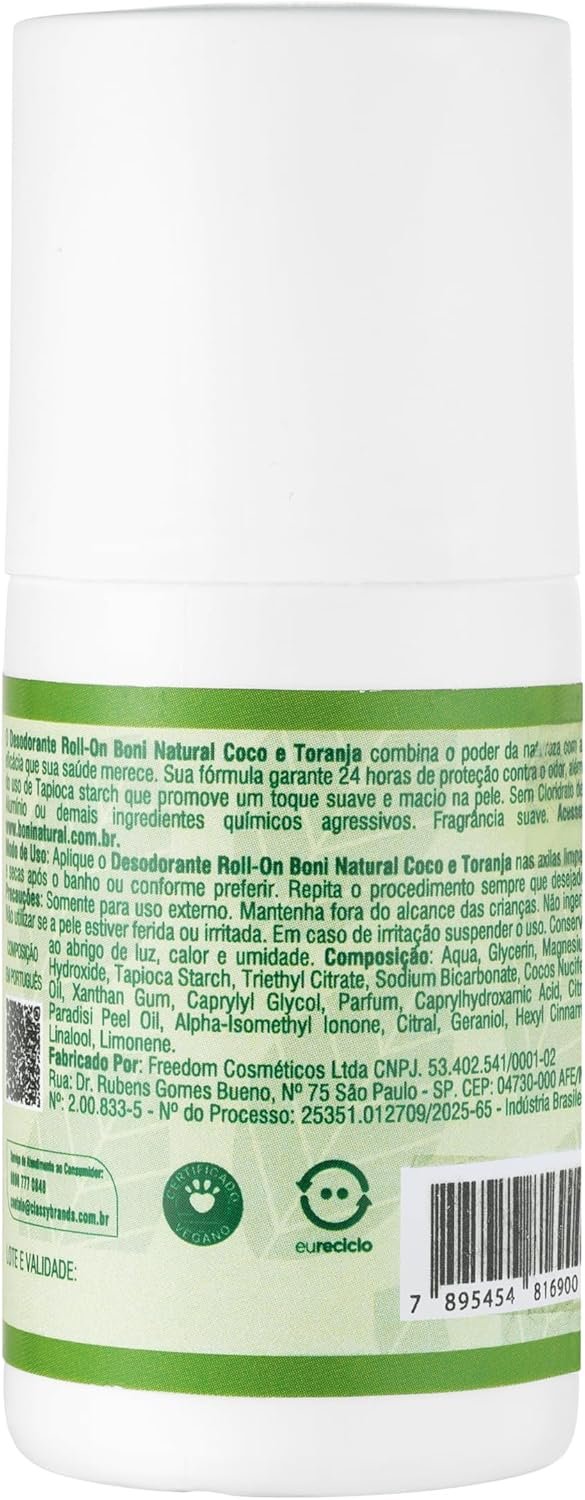 Desodorante Roll-On sem Alumínio, Natural, Vegetal e Vegano, Coco e Toranja, Boni Natural, 55ml
