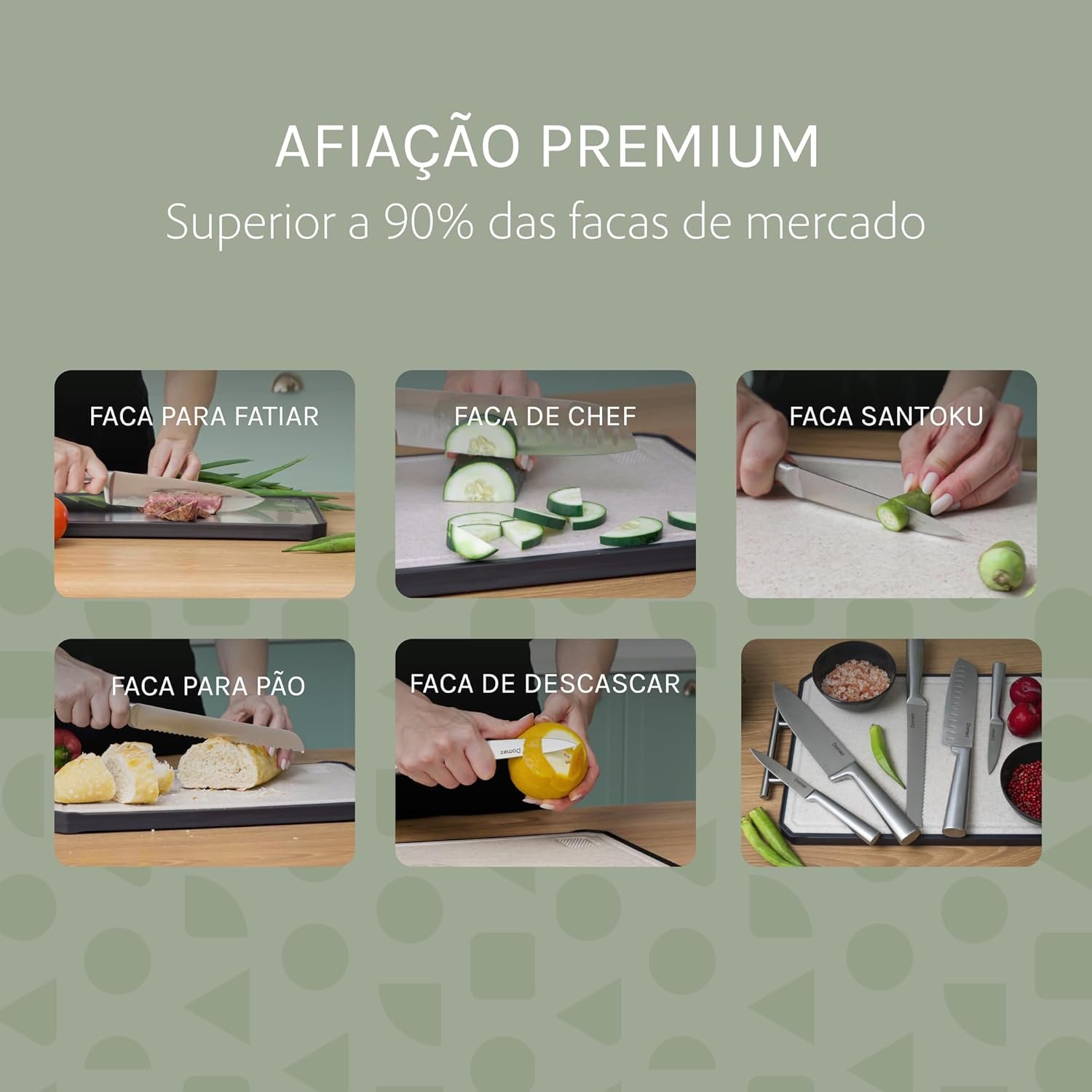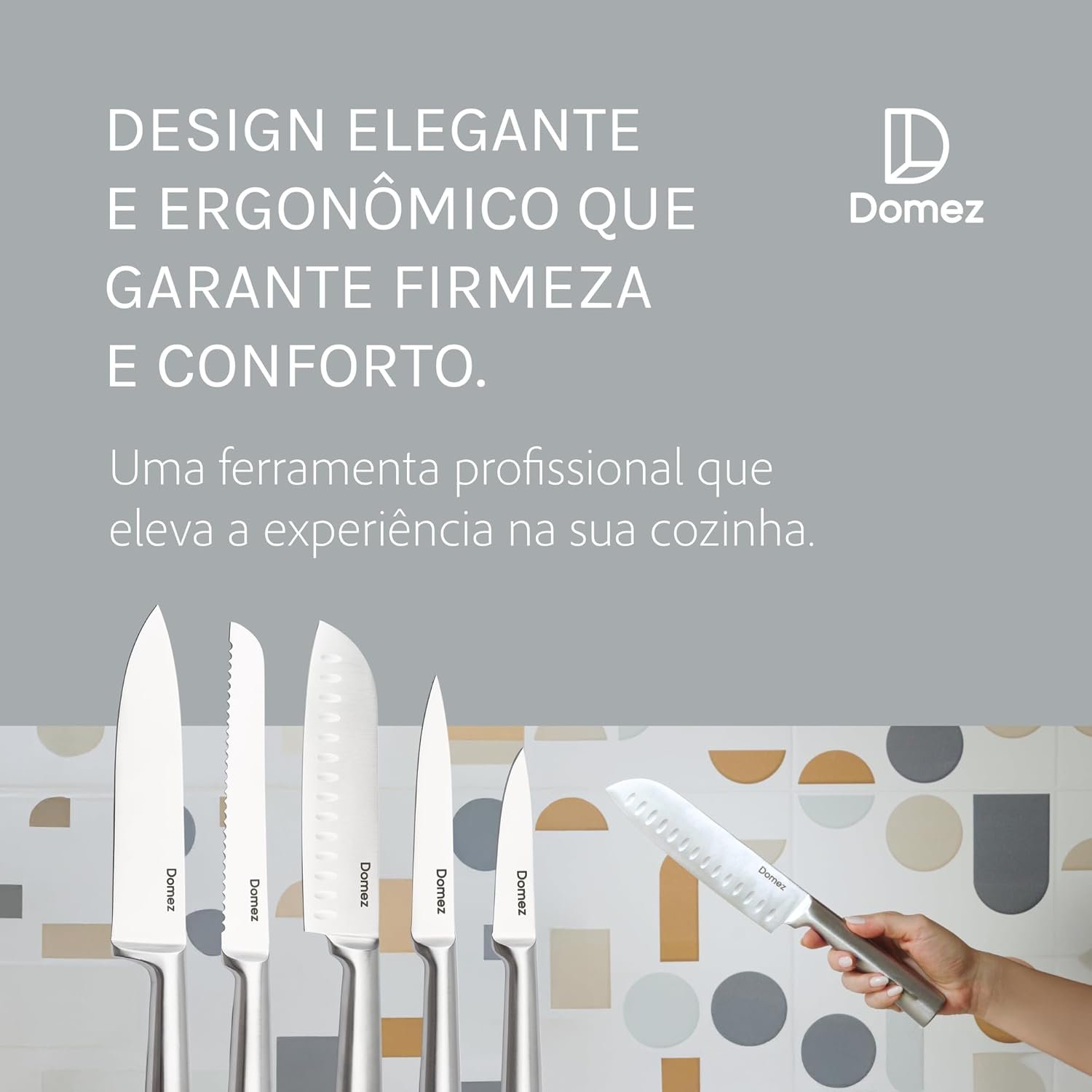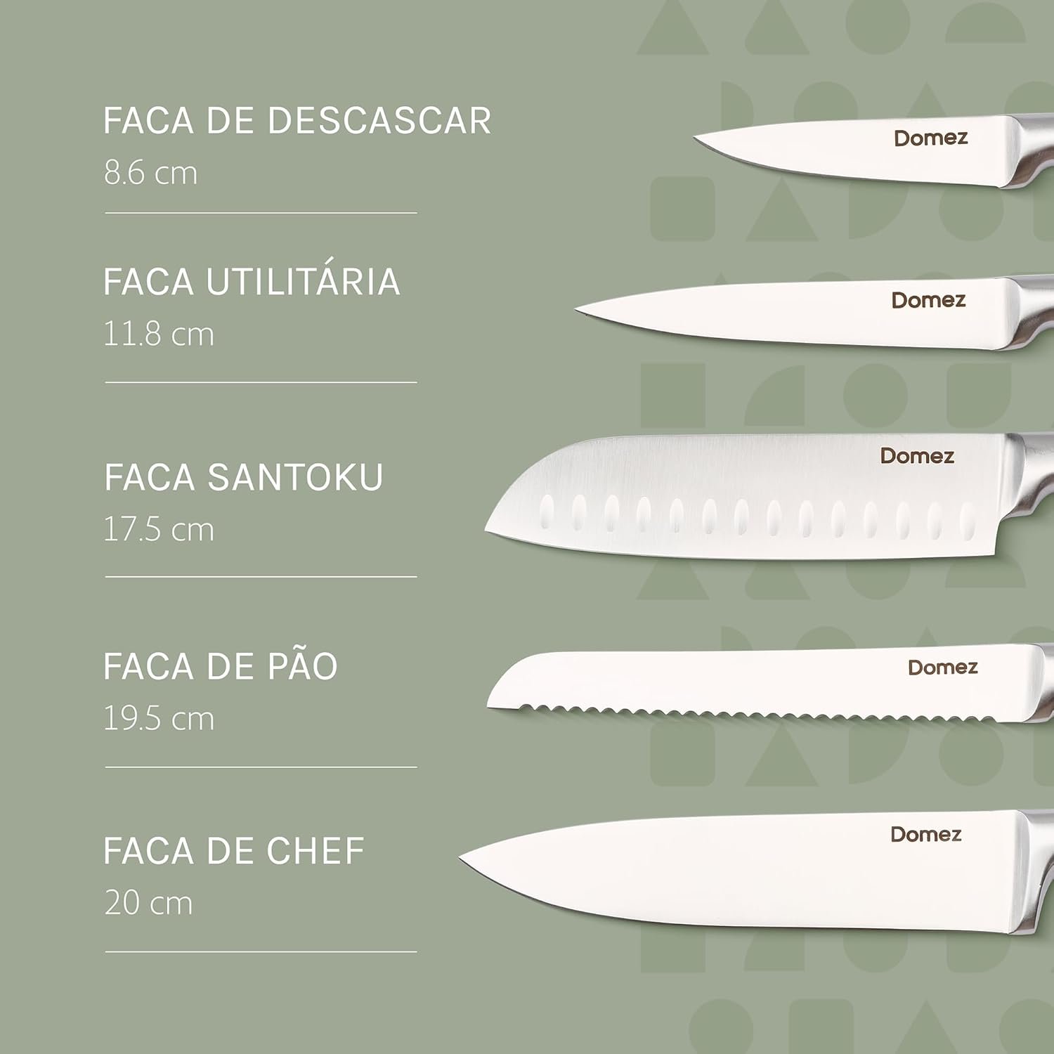 DOMEZ Jogo de 5 Facas Inox 4Cr13 | Conjunto de Facas de Cozinha Profissional | Faca Chef, Faca de Pão e Faca Churrasco | Design Ergonômico e Resistente à Ferrugem