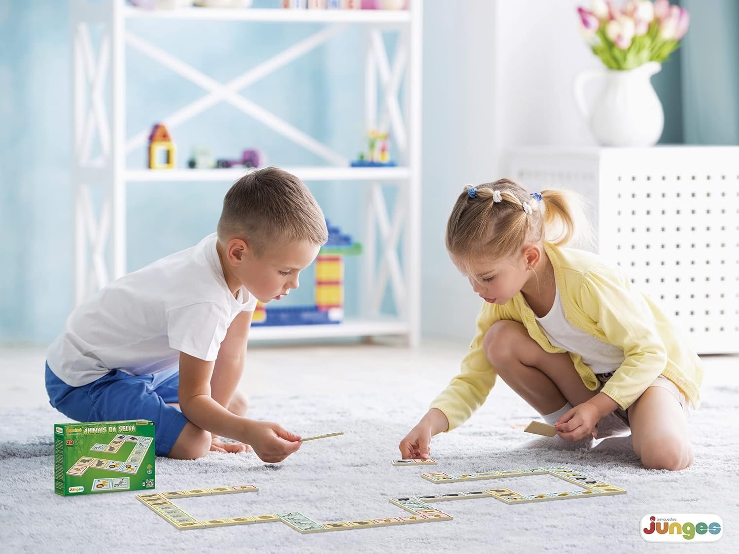 Com peças resistentes e design atrativo, o Domino Animais da Selva – Junges é perfeito para momentos de entretenimento em família ou com os amiguinhos. Ideal para desenvolver habilidades cognitivas e motoras, tornando a brincadeira ainda mais educativa e divertida.