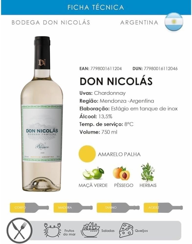 Don Nicolás Vinho Branco Argentino Chardonnay 750Ml