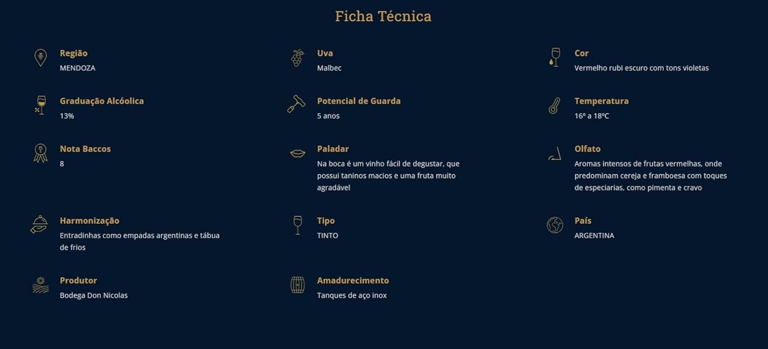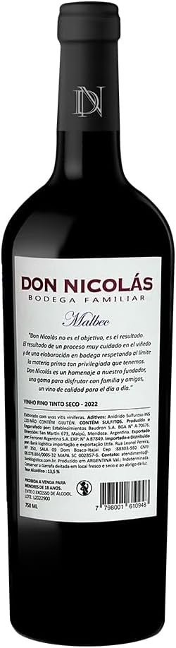 Don Nicolás Vinho Tinto Argentino Malbec 750MlDon Nicolás Vinho Tinto Argentino Malbec 750Ml