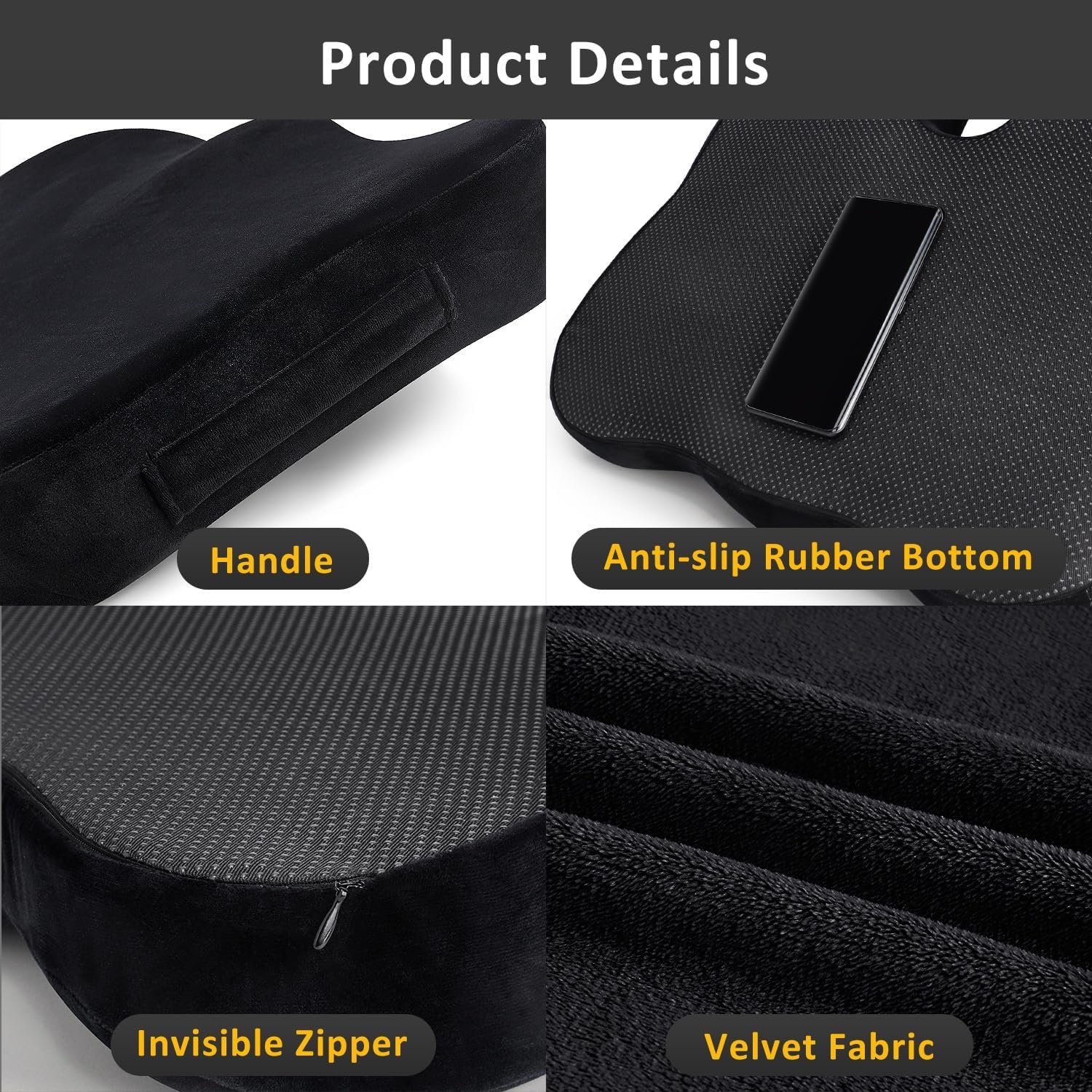 Dreamer Car Almofada de assento,almofada de cadeira de escritório,almofada assento de carro,almofadas de cadeira espuma viscoelástica para cóccix,ciática,alívio da dor lombar (capa de veludo,preta)
