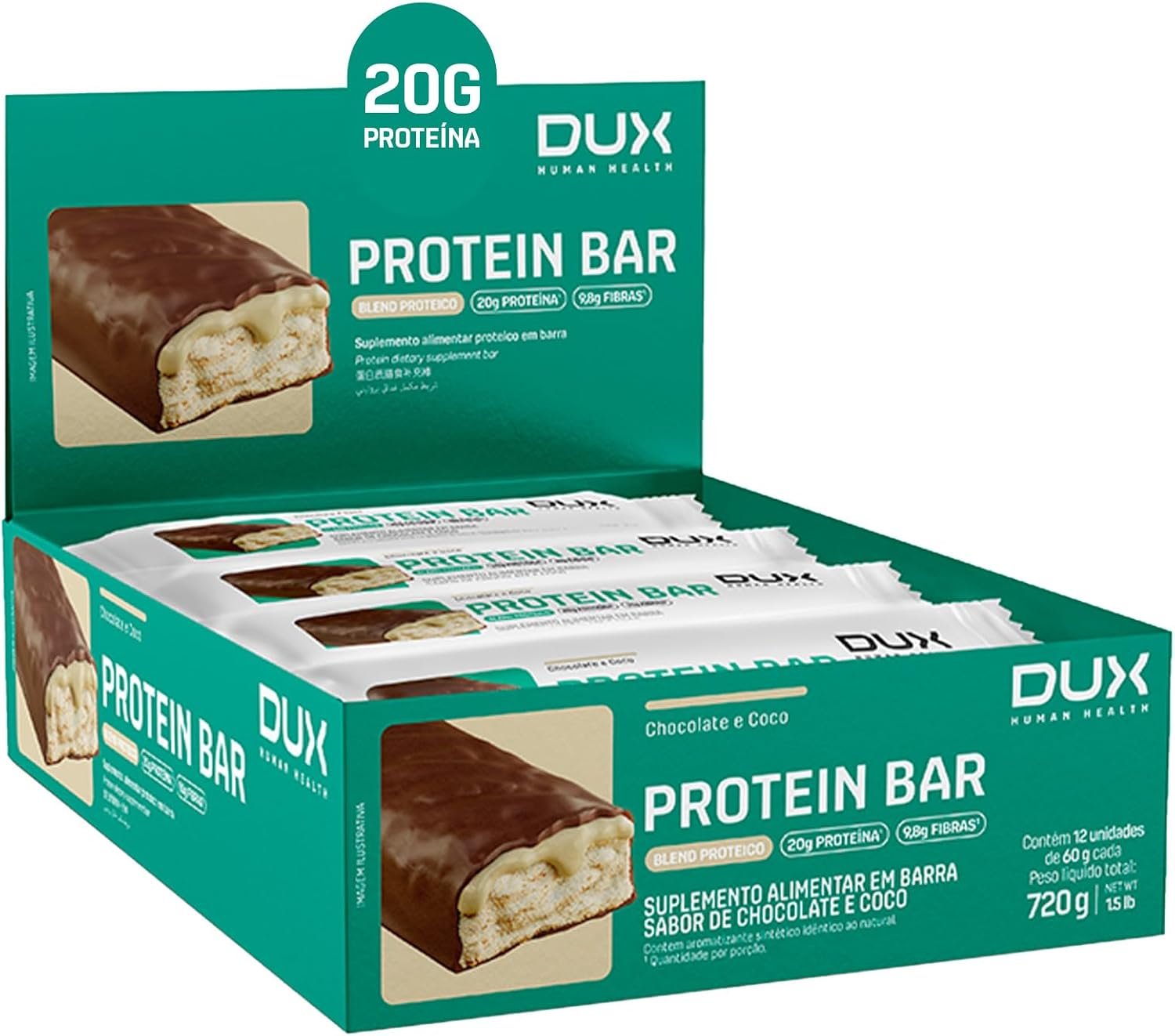 DUX HUMAN HEALTH Protein Bar 12 Unidades Chocolate e Coco – Snack Proteico com FibrasDUX HUMAN HEALTH Protein Bar 12 Unidades Chocolate e Coco – Snack Proteico com Fibras