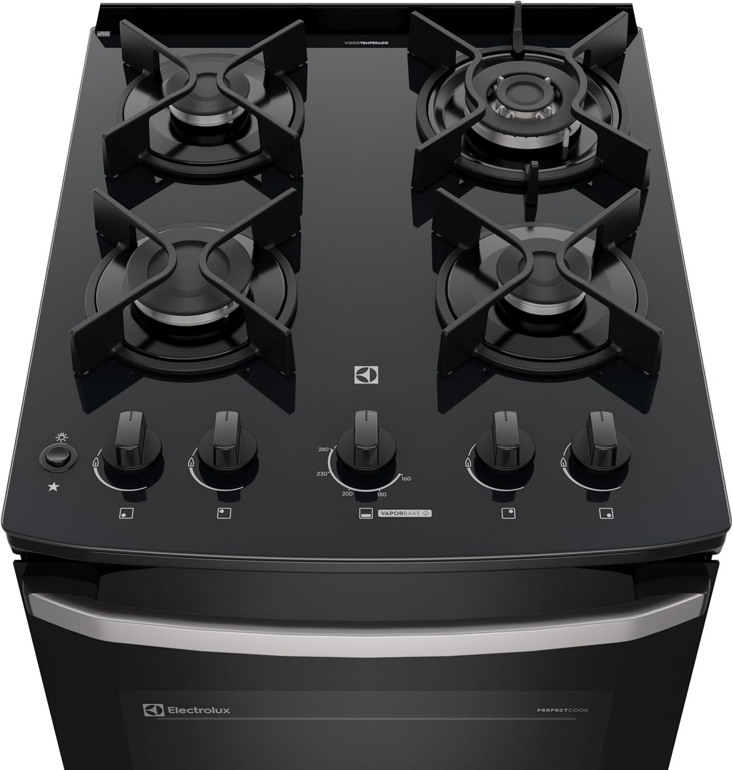 Electrolux Fogão 4 bocas Electrolux Preto Efficient Mesa Vidro, Tripla Chama e PerfectCook (FE4GB) Bivolt