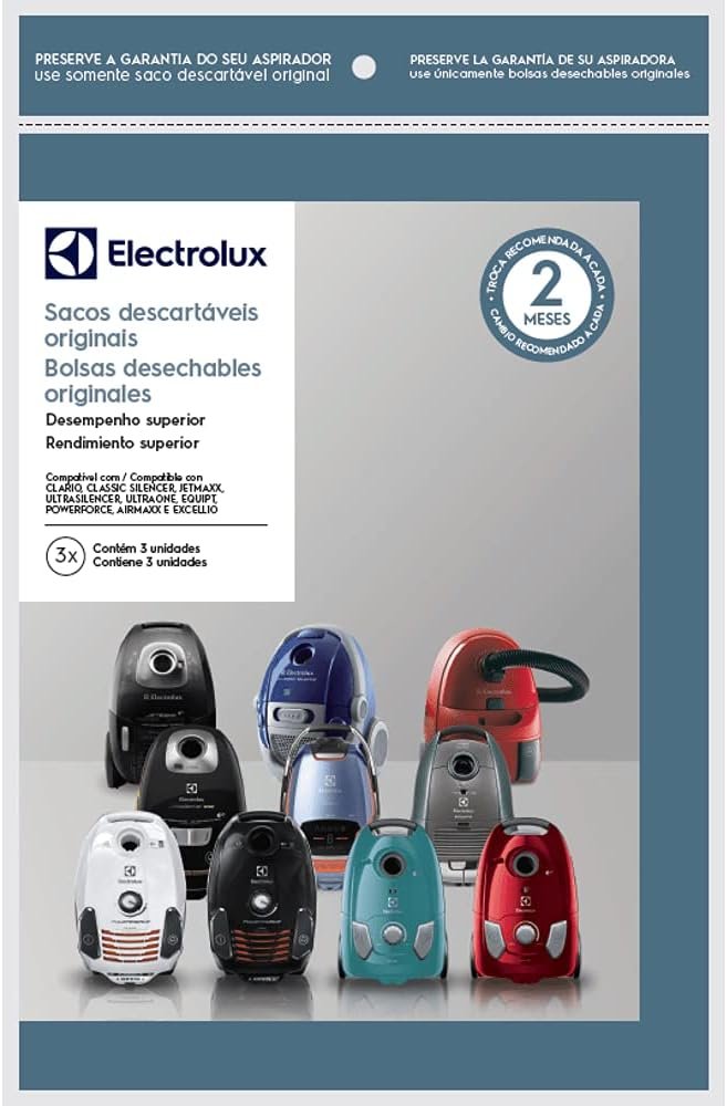Electrolux Kit 3 Sacos de aspirador de pó – Modelos: Clario, Classic Silencer, Jetmaxx, Ultrasilencer, Ultraone, Equipt e Powerforce (SWECL)