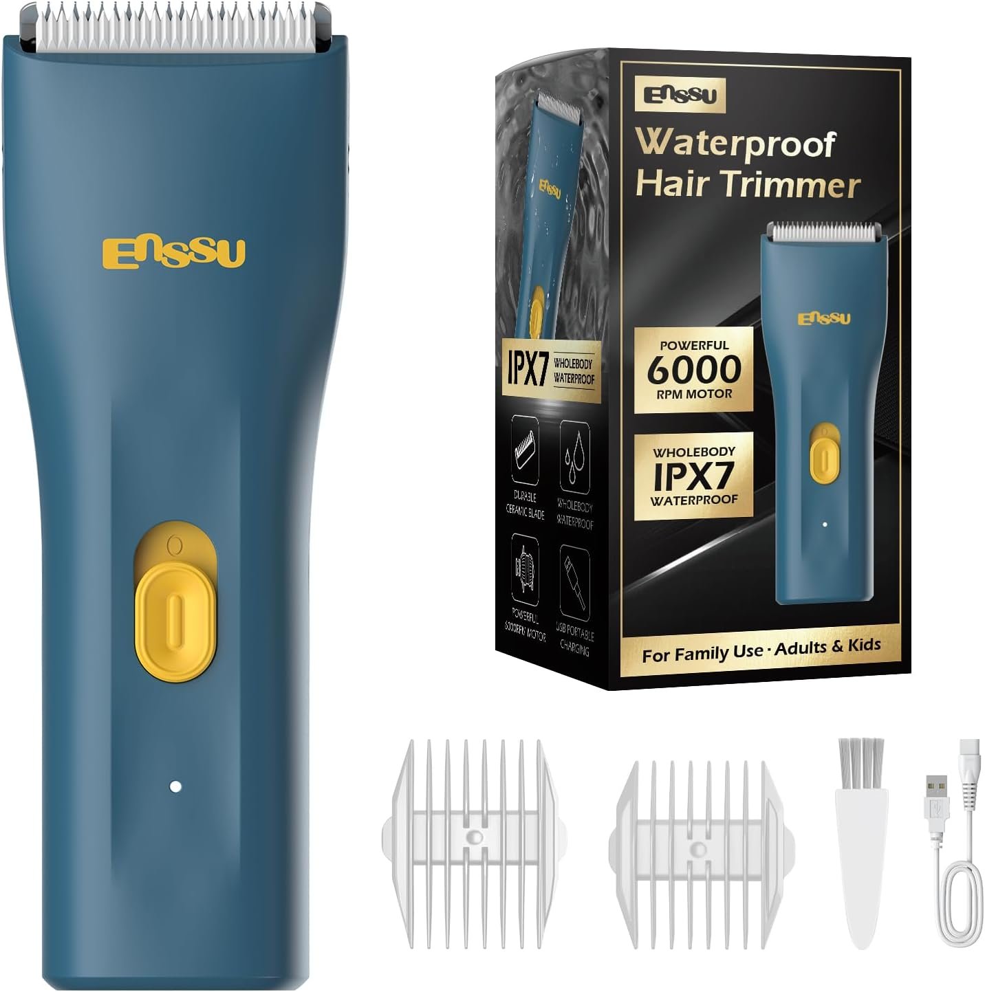 ENSSU Aparador de cabelo sem fio masculino – Aparador de barba à prova d’água com lâmina de cerâmica, kit de corte de cabelo elétrico recarregável para adultos e crianças, preto (Verde)