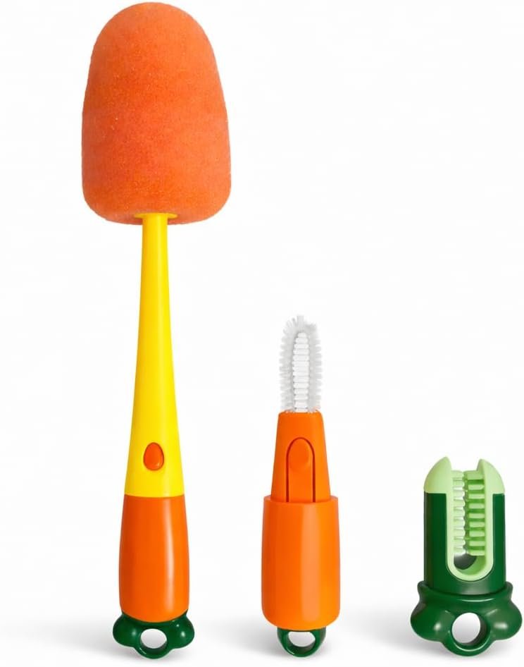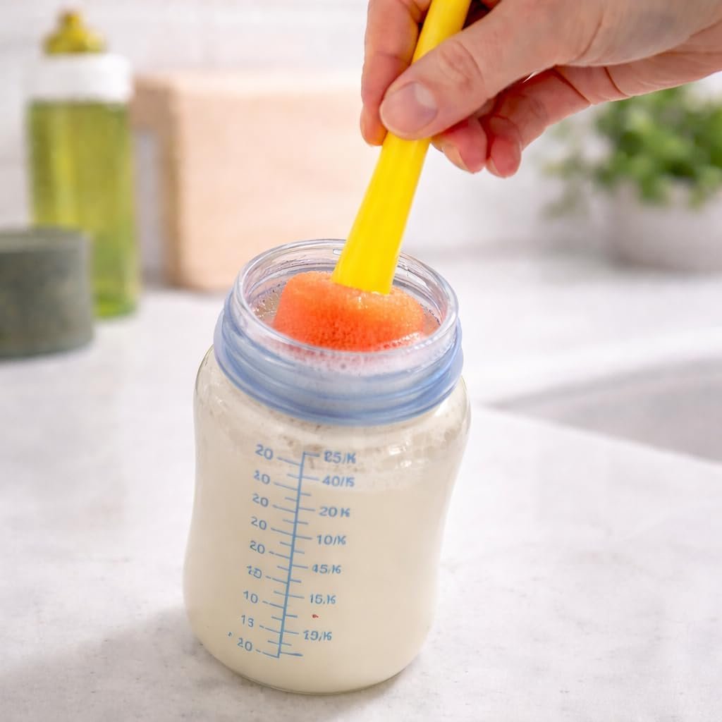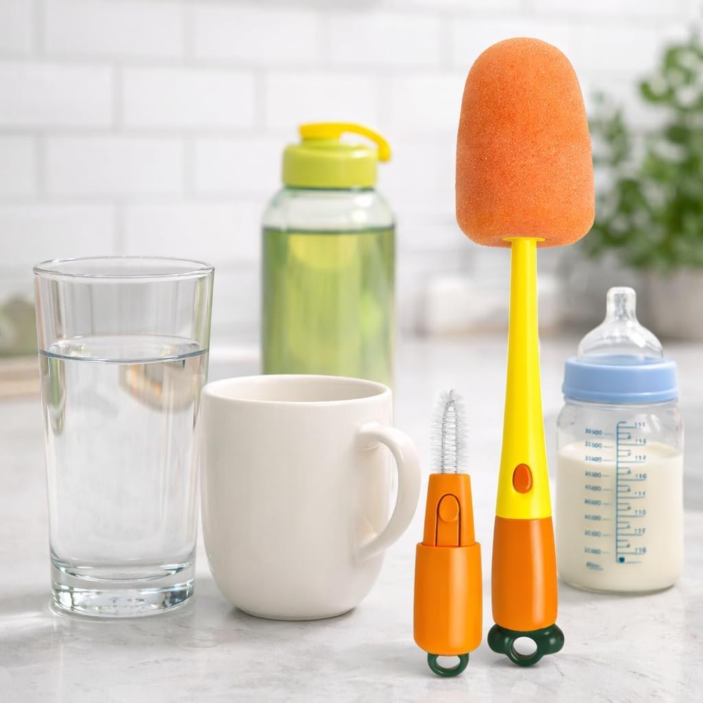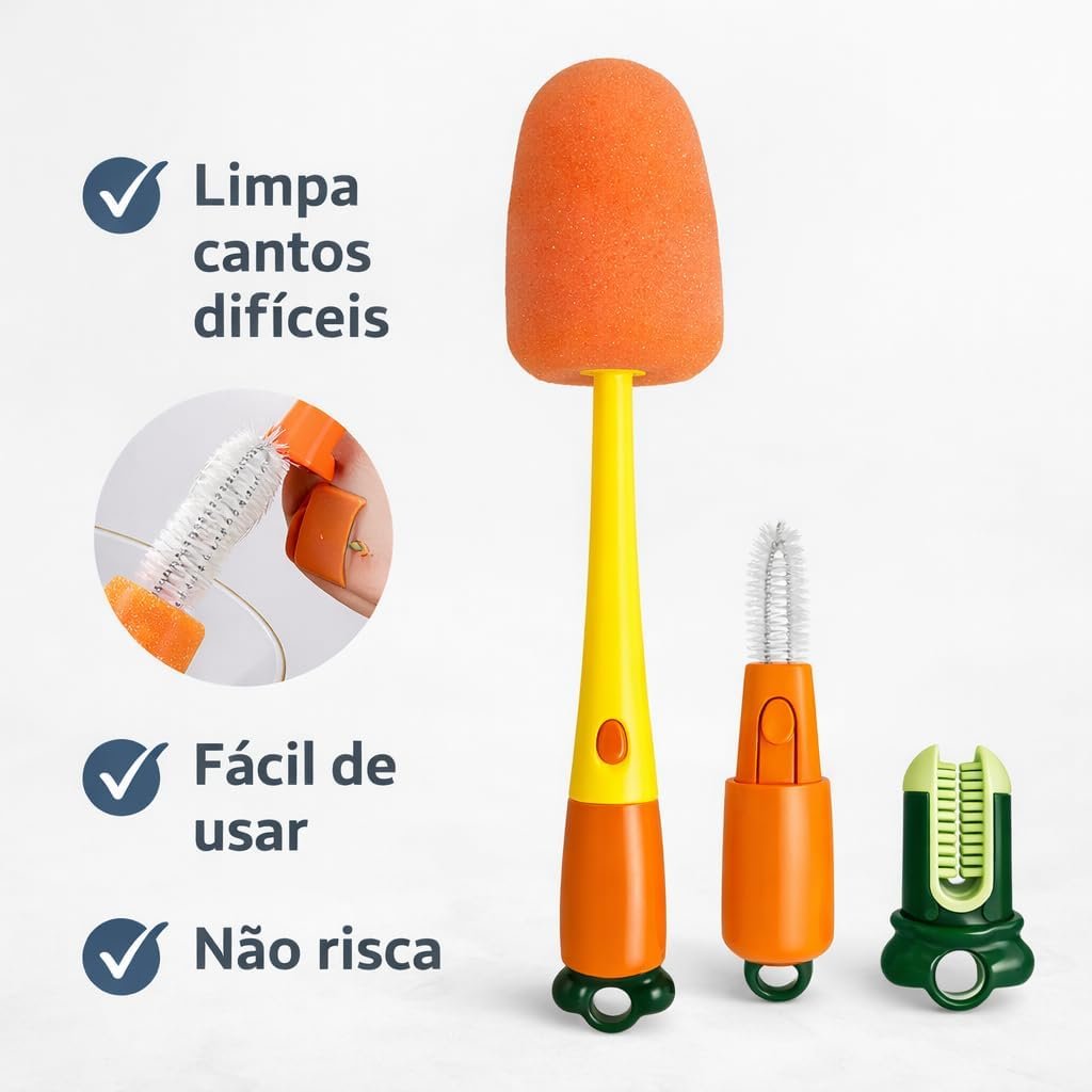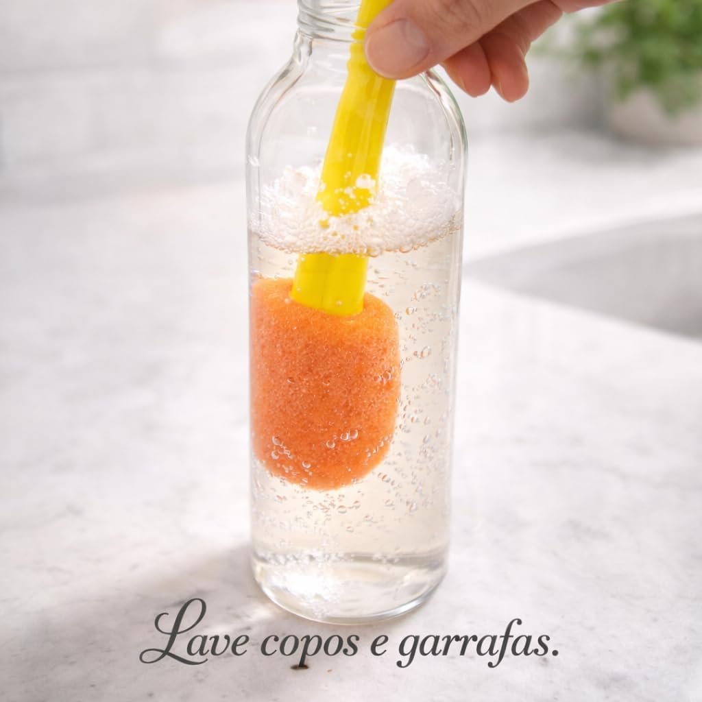 Escova de Limpeza 3 em 1 para Copos e Garrafas | Esponja + Escova de Detalhe | Limpa Cantos Difíceis | Ideal para Garrafas, Canecas, Mamadeiras