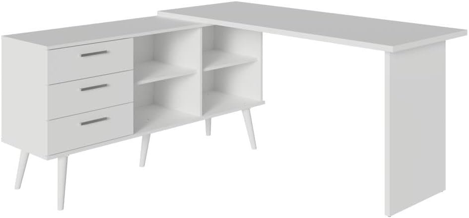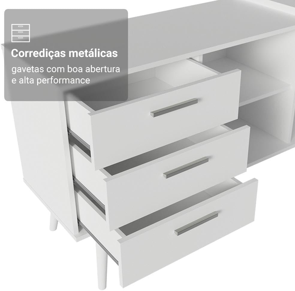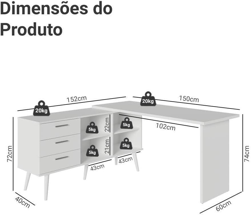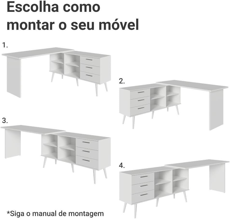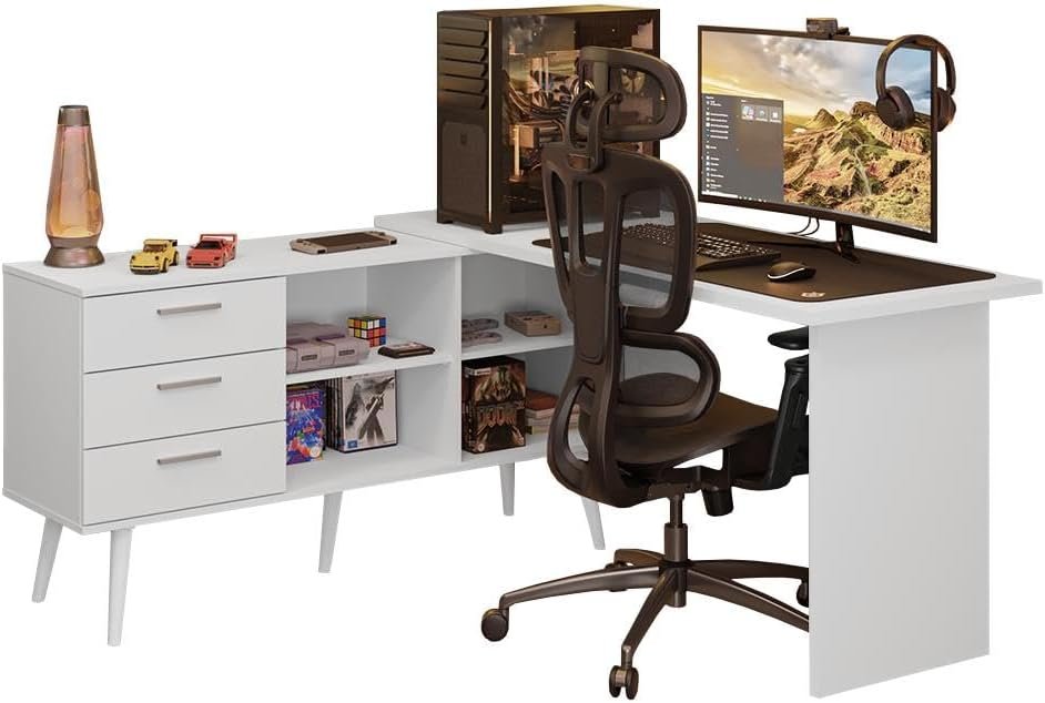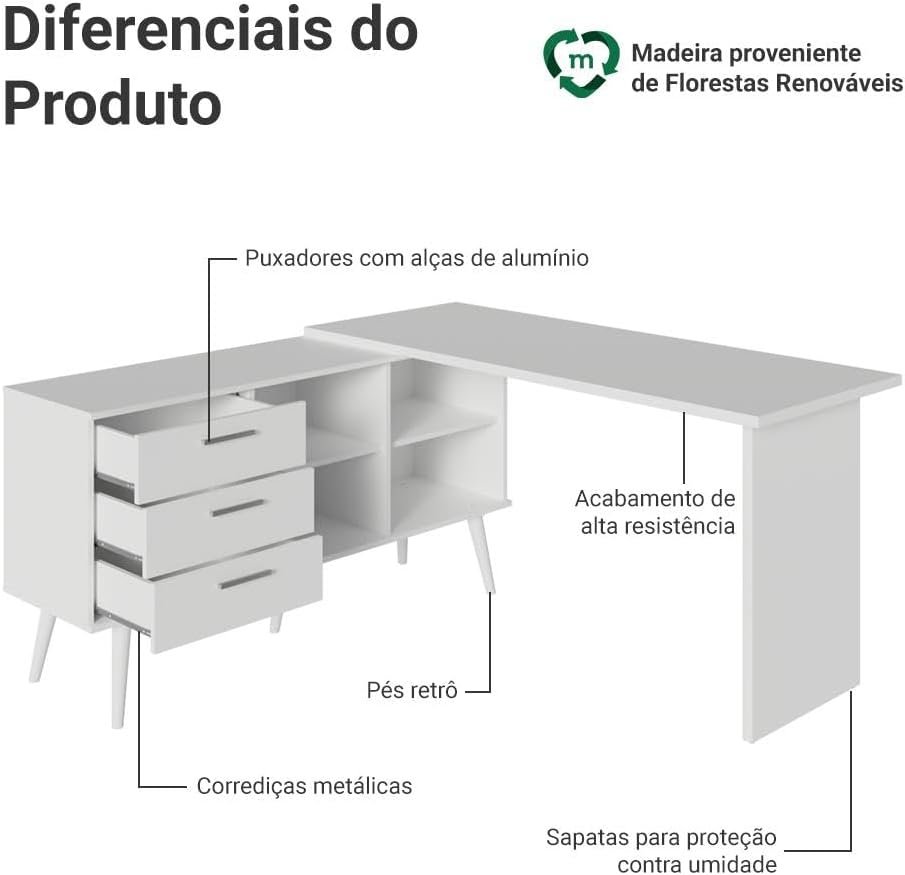 Escrivaninha Em L Mesa Para Computador Gamer 3 Gavetas Branco Lisboa Madesa