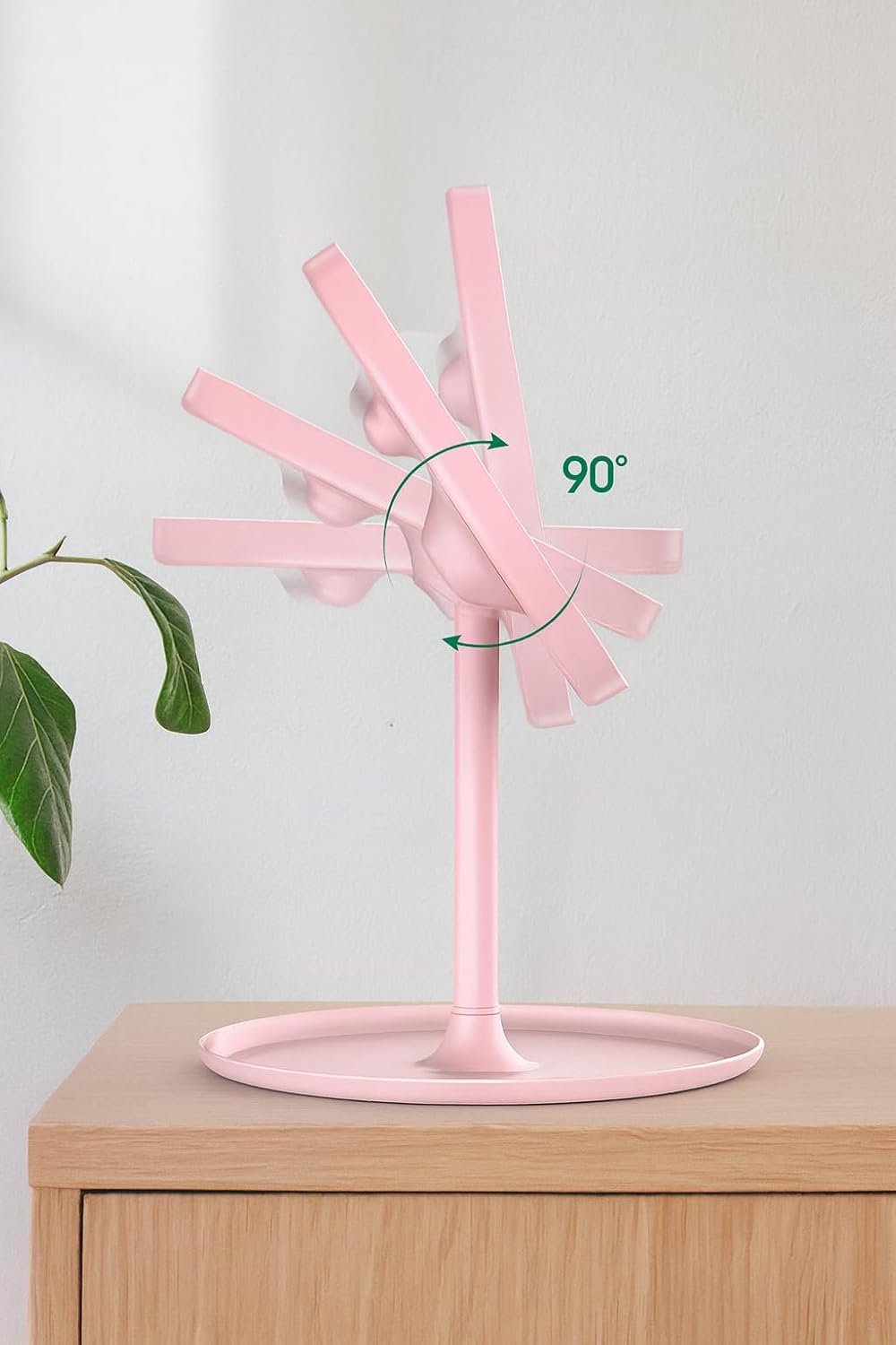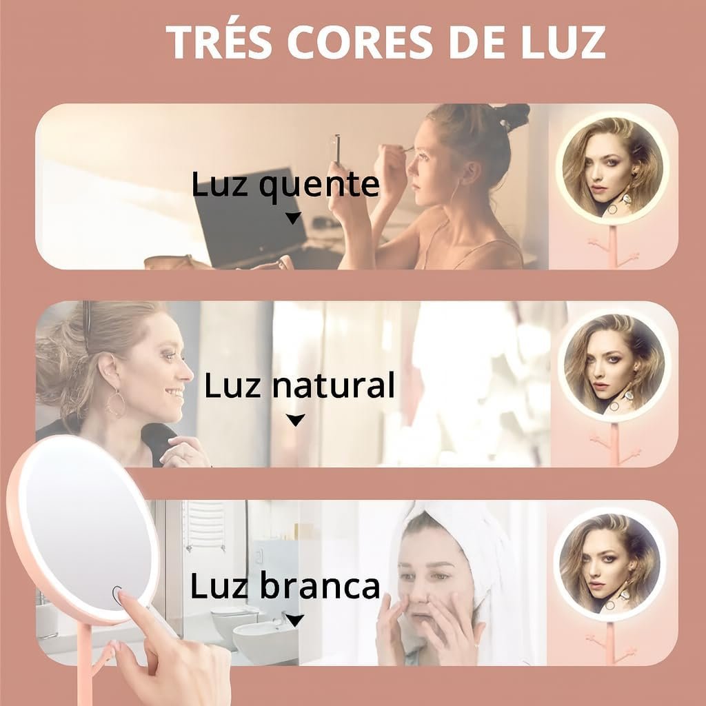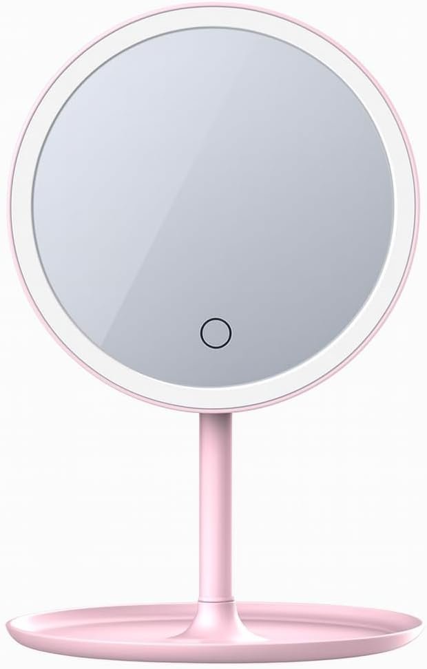 Espelho de Mesa com Luz LED, Regulação por Toque, 3 Cores de Luz,com Bandeja Organizadora,(Rosa)