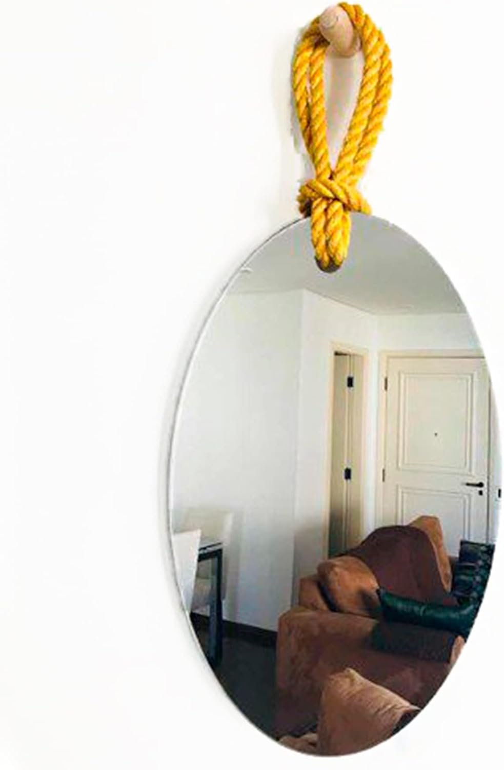Espelho Decorativo Hole Alça Sisal Amarela 60x40cm Oval