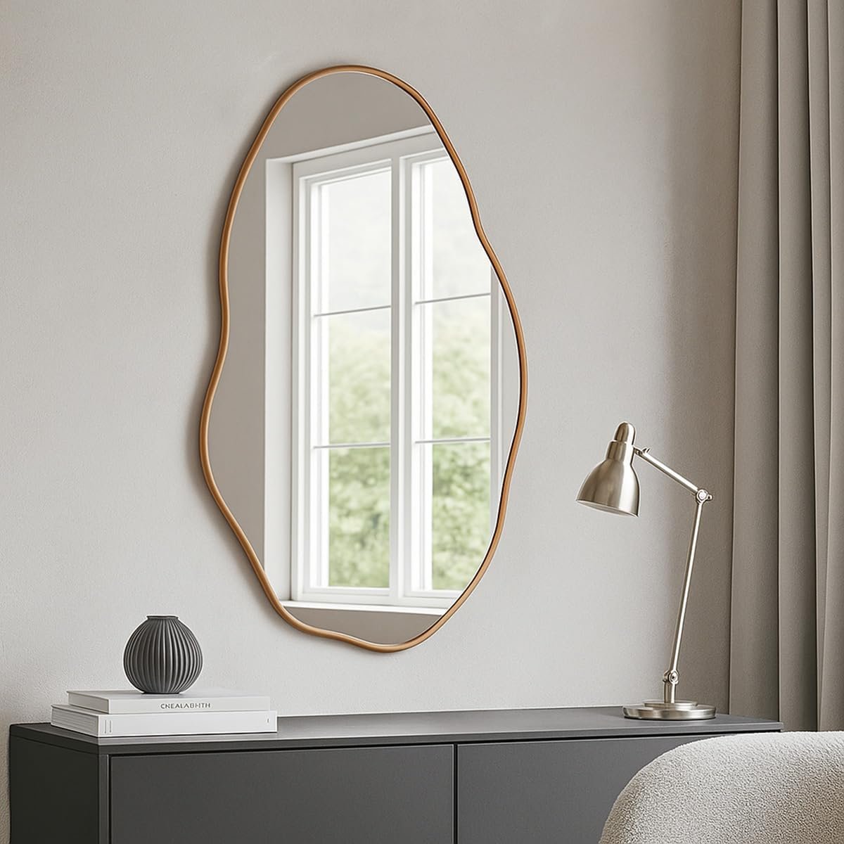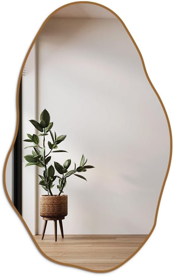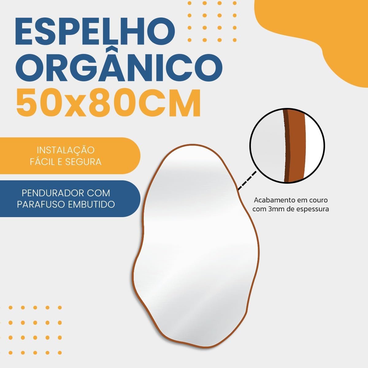 Espelho Orgânico Pedra 80x50cm Design Moderno com Moldura em Couro para Decoração Sofisticada (Caramelo)