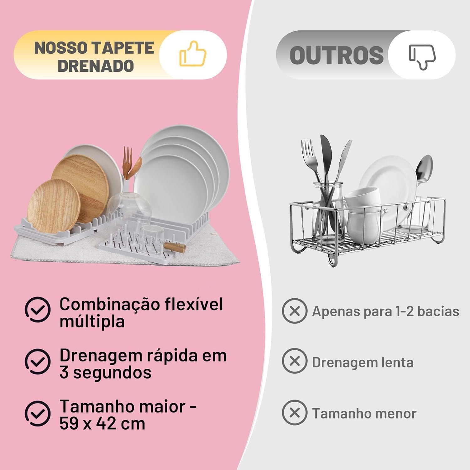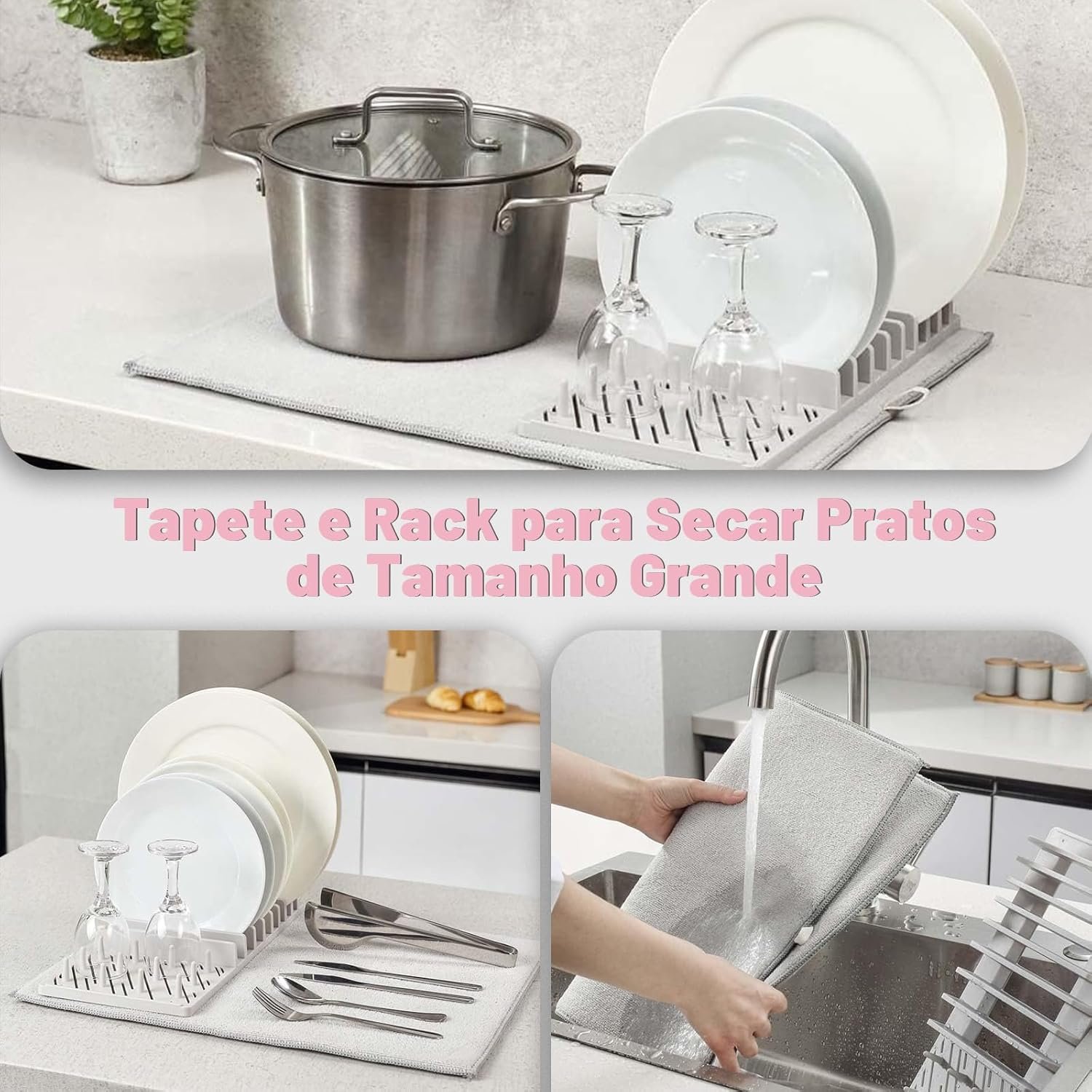 Estojo de Escorredor de Louça para Cozinha-3+1 Escorredor de Talheres & 39 * 50cm Tapete de escorredor, Organizador de Louça Multifuncionais