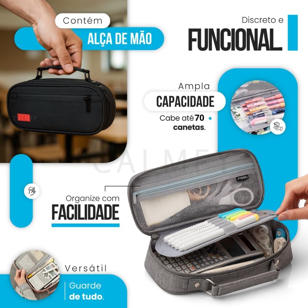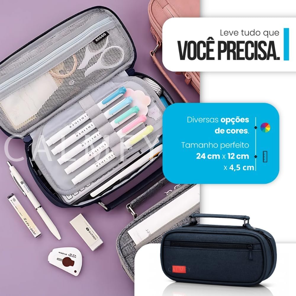Organize seus materiais escolares de forma prática e eficiente com o Estojo Escolar Box Grande Organizador com Divisórias e Alça! Este estojo necessaire unissex na cor Azul oferece uma capacidade ampla para guardar lápis, canetas e outros materiais escolares, mantendo tudo organizado e ao alcance das mãos. Seja na escola, no trabalho ou em viagens, tenha seus itens essenciais sempre bem guardados e protegidos. Leve já o seu!