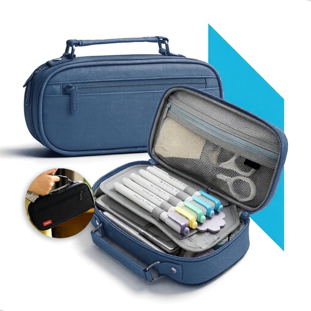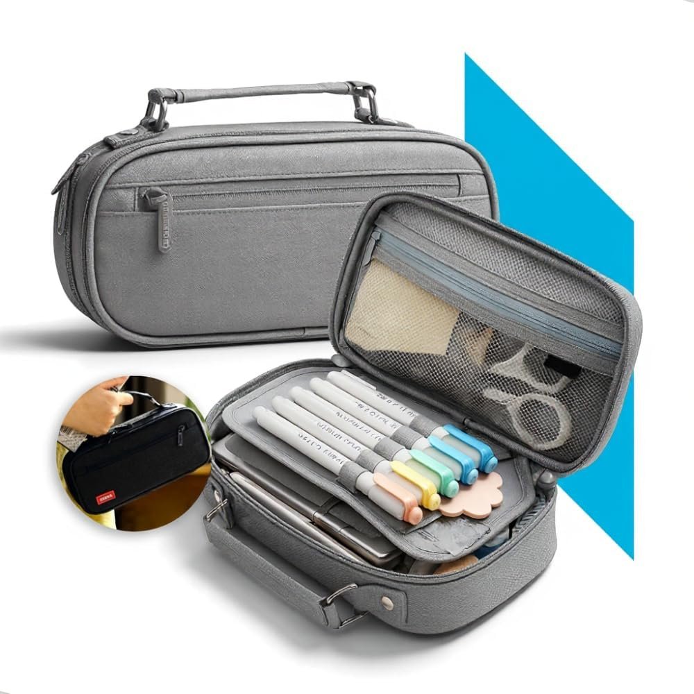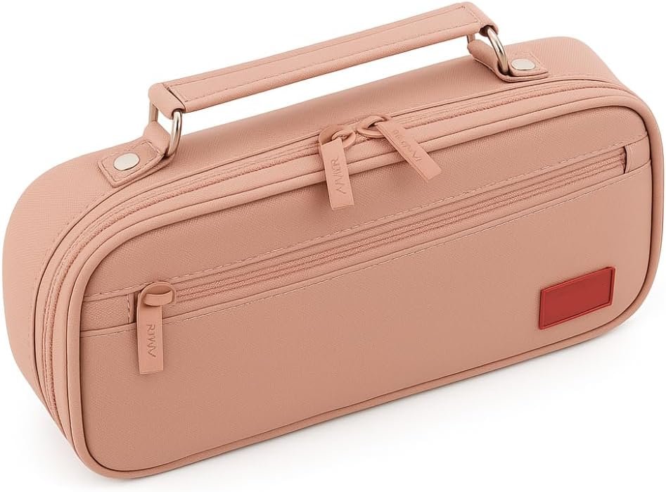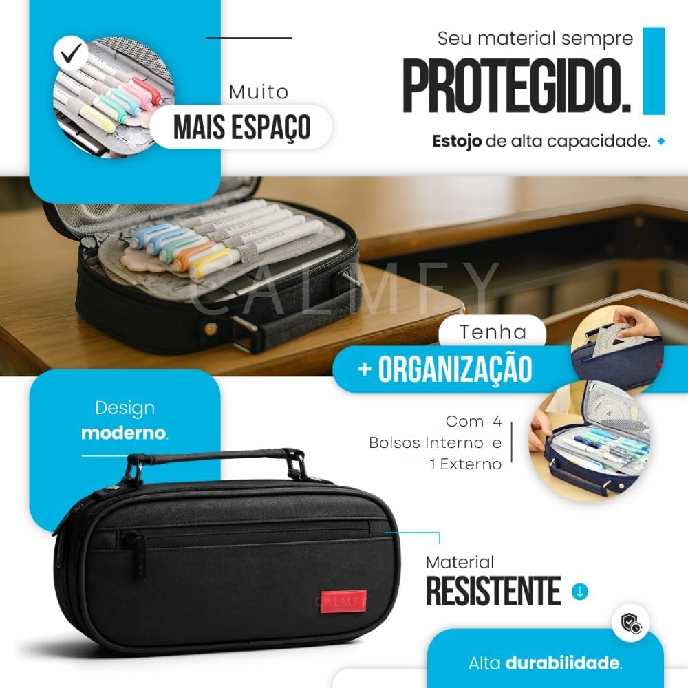 Título do Produto: Estojo Escolar Box Grande Organizador com Divisórias e Alça – Estojo Necessaire Unissex Capacidade Ampla para Lápis, Canetas, Material Escolar (Rosa)