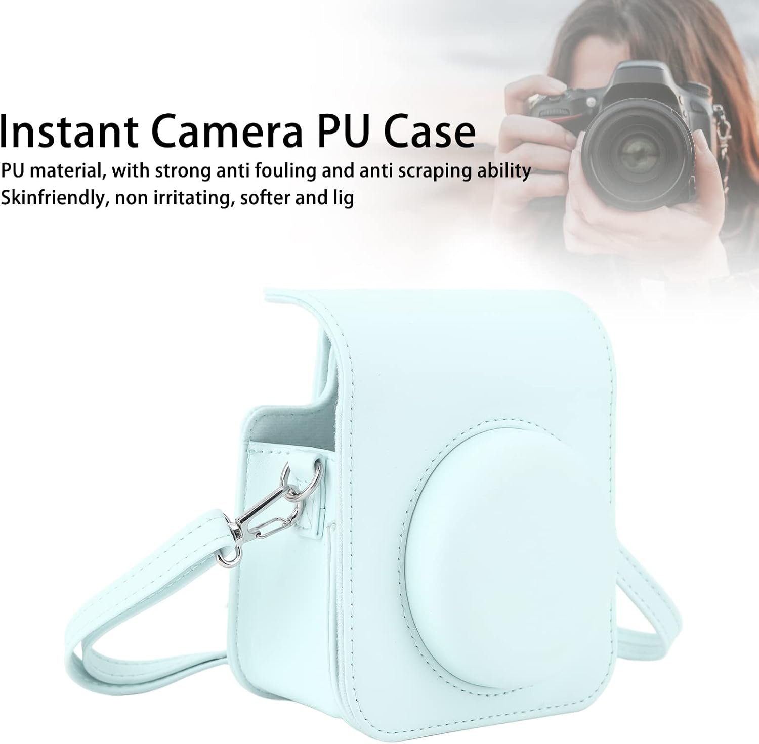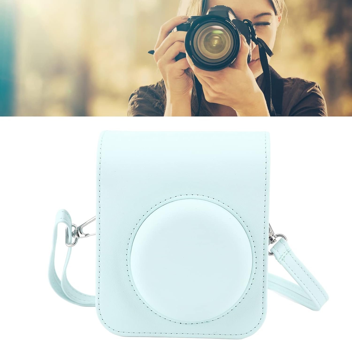 Título do Produto: Estojo Protetor para Câmera Instantânea Mini 12, Capa de Bolsa de Couro PU Premium Com Alça de Ombro Ajustável Removível, Estojo Fofo para Câmera Instantânea