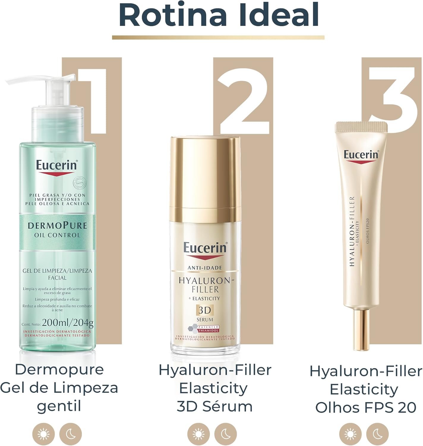 EUCERIN Creme de Olhos Anti-idade Firmador FPS 20 15ml, Elasticity, Hyaluron-Filler, Ácido Hialurônico, Antirrugas – Tenha uma pele mais firme, hidratada e protegida dos raios solares com o poder do ácido hialurônico. Reduza rugas e linhas de expressão de forma eficaz. Aproveite o melhor da tecnologia para cuidar da sua pele com EUCERIN.