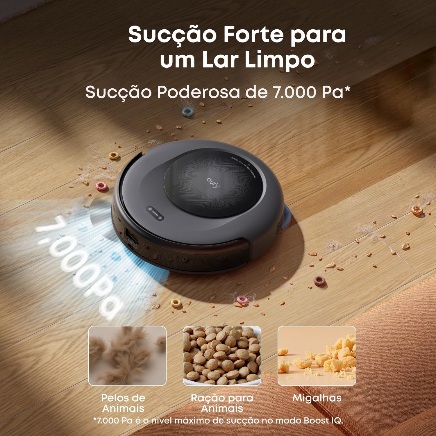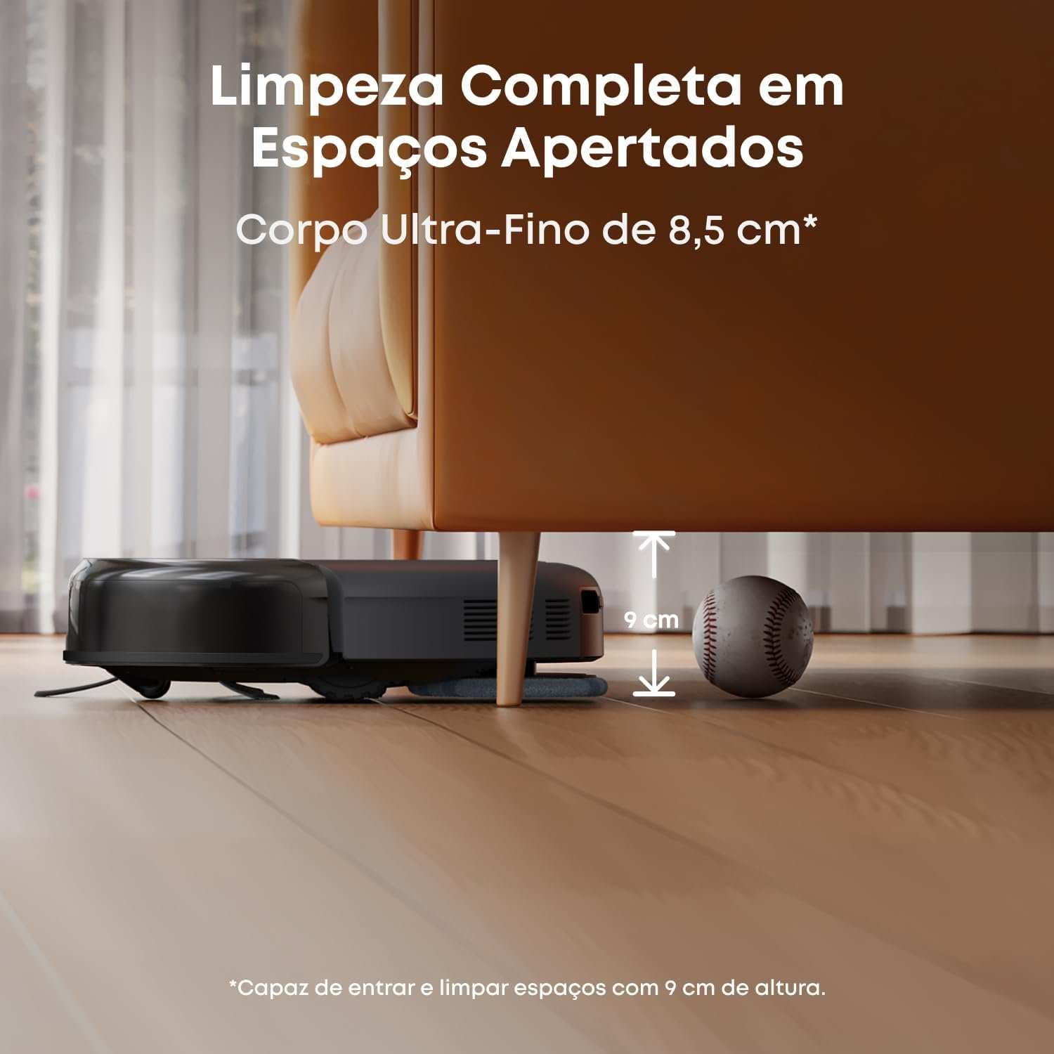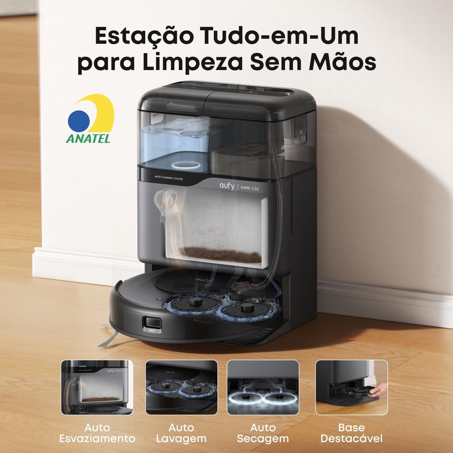 eufy C20 Robô aspirador, Lavagem/secagem automática, Sucção potente, Esvaziamento automático, Corpo ultrafino de 8,5 cm, Limpa cantos baixos, Escovas antiembaraço, 220V.