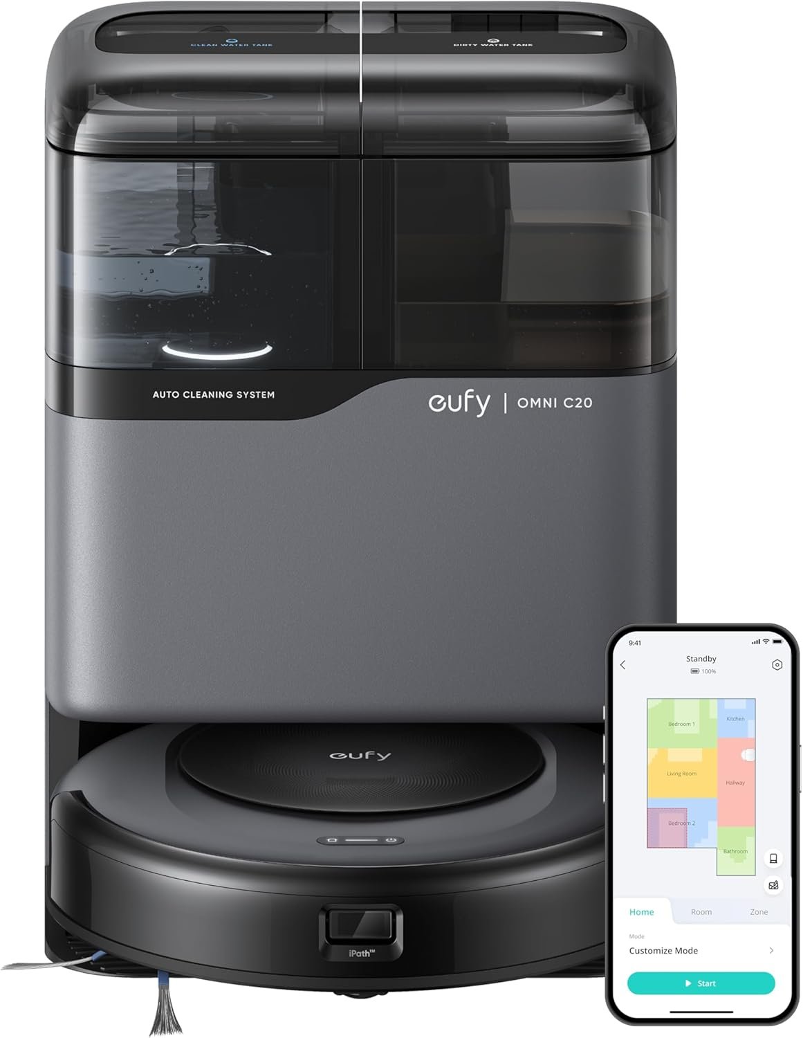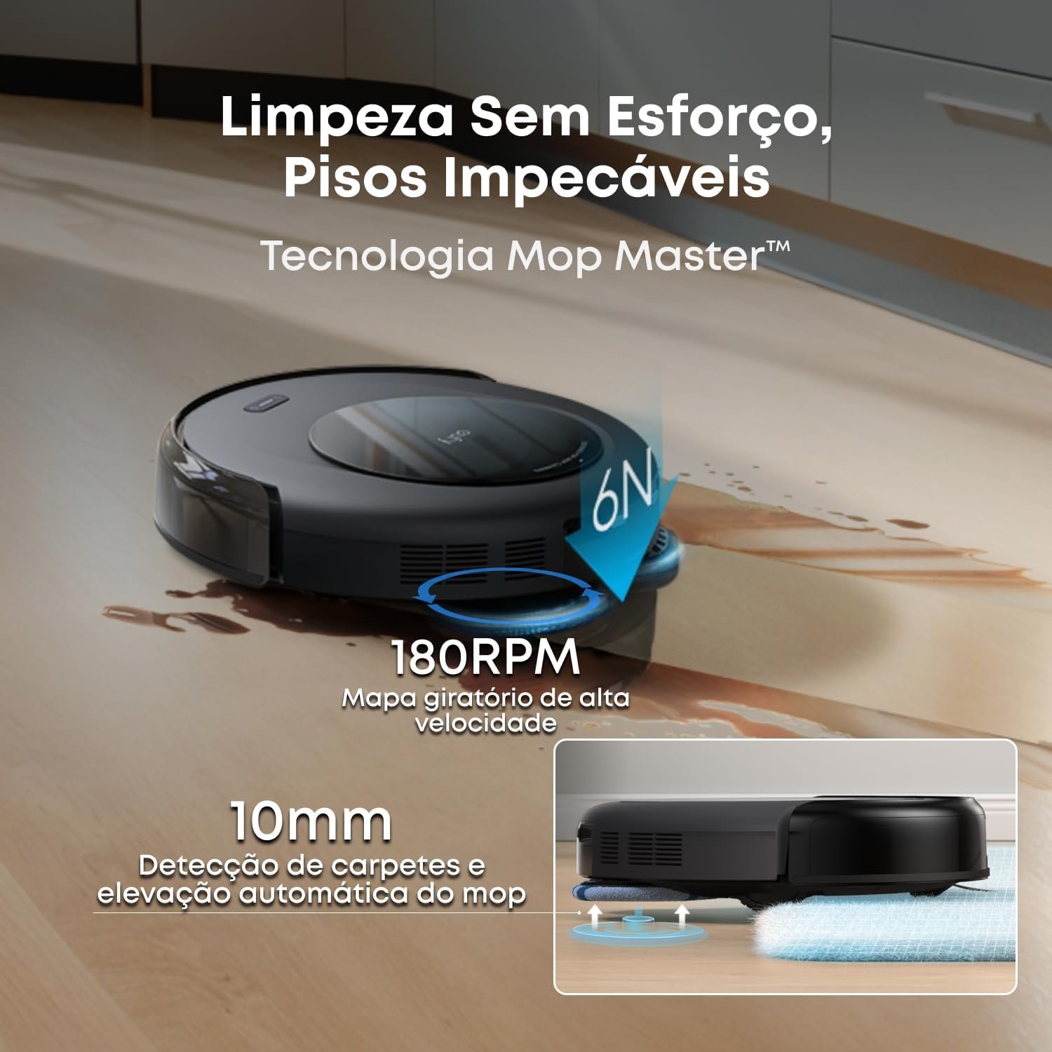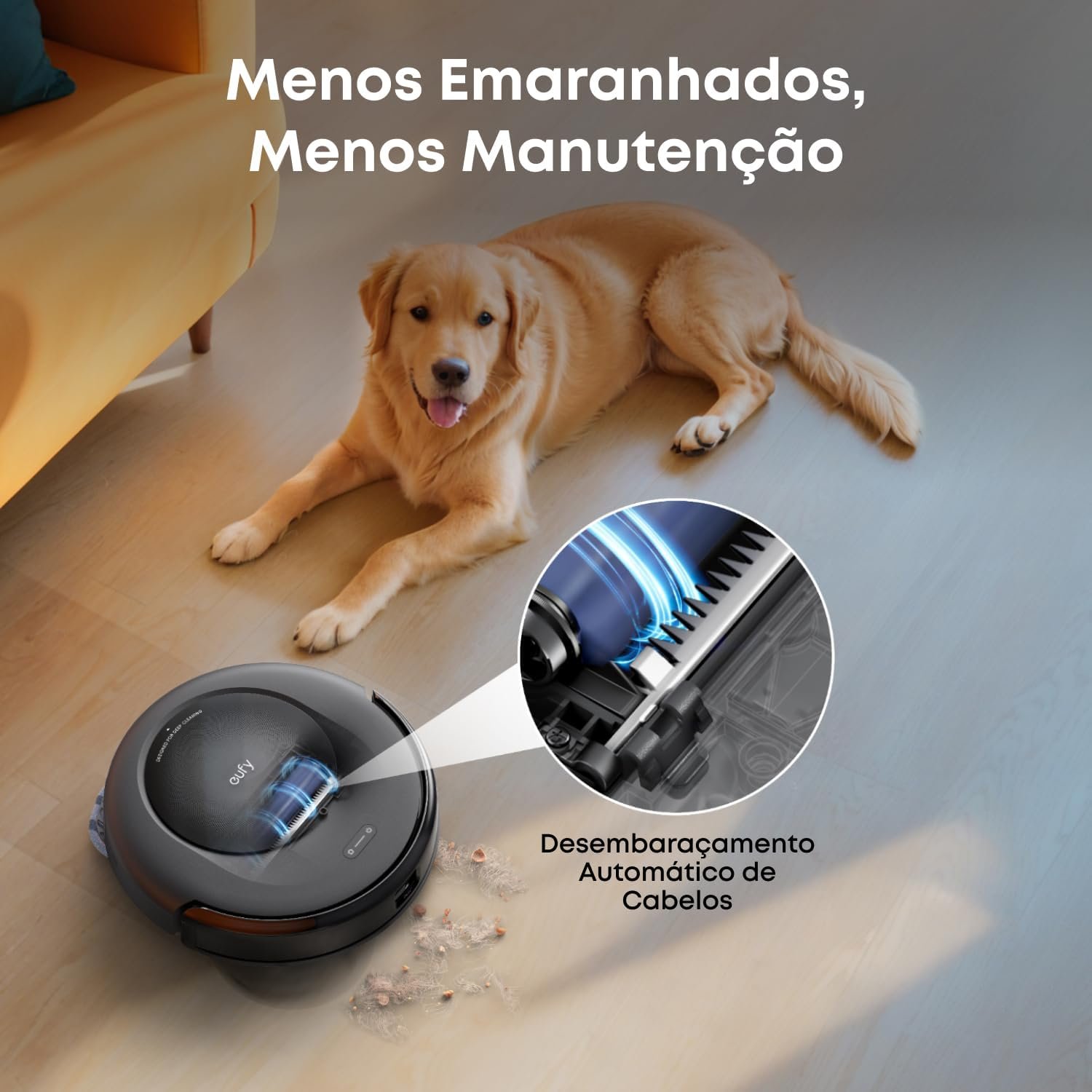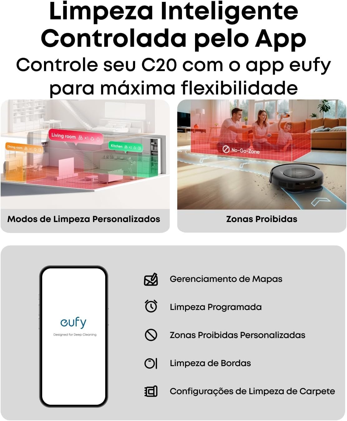 eufy C20 Robô aspirador, Lavagem/secagem automática, Sucção potente, Esvaziamento automático, Corpo ultrafino de 8,5 cm, Limpa cantos baixos, Escovas antiembaraço, 220V.