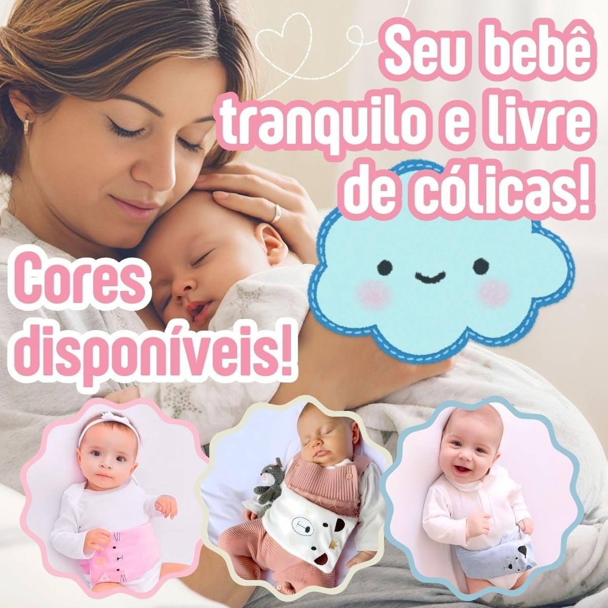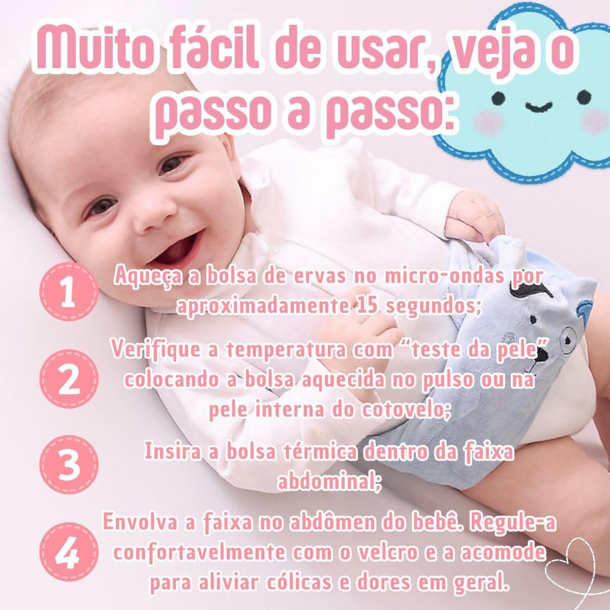 Faixa Térmica Para Cólica Bolsa Ervas Cinta Bebê Abdominal Colica Gases Dor de Barriga (Rosa)