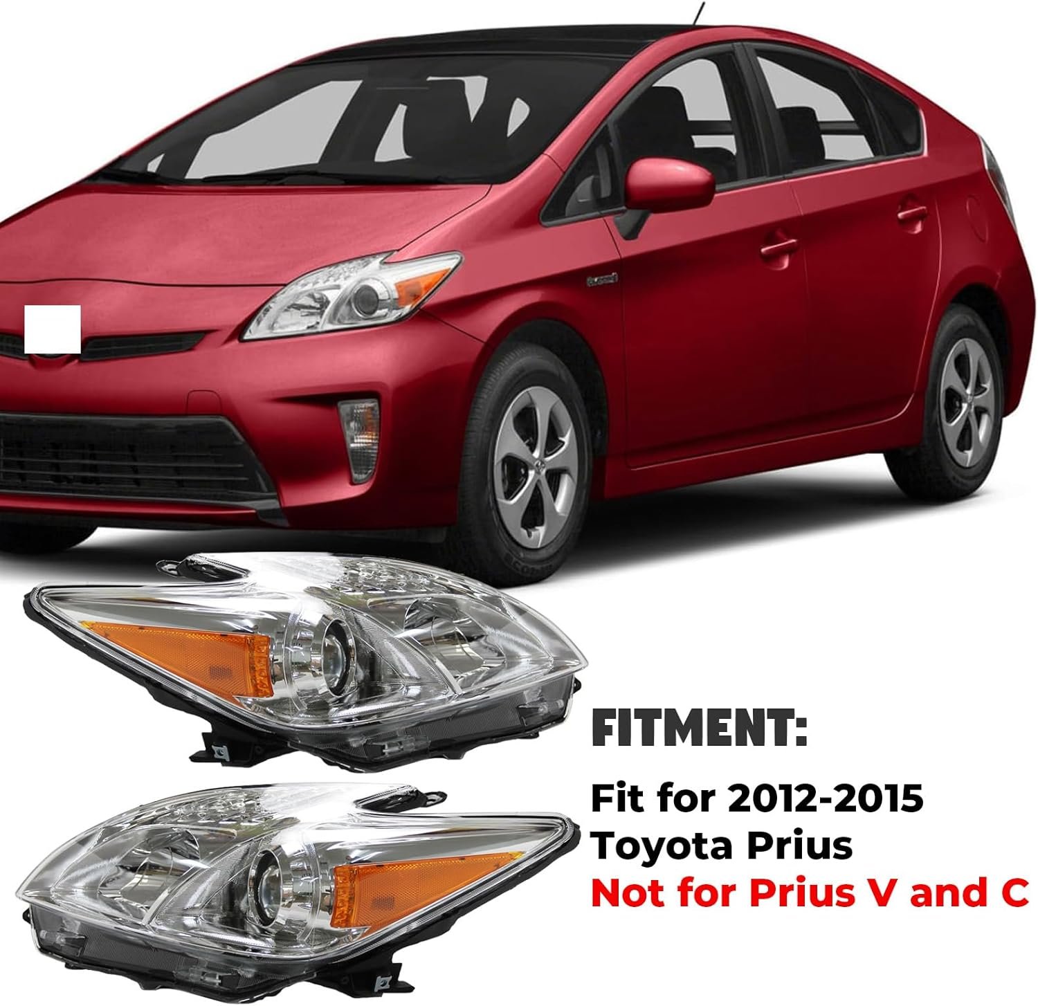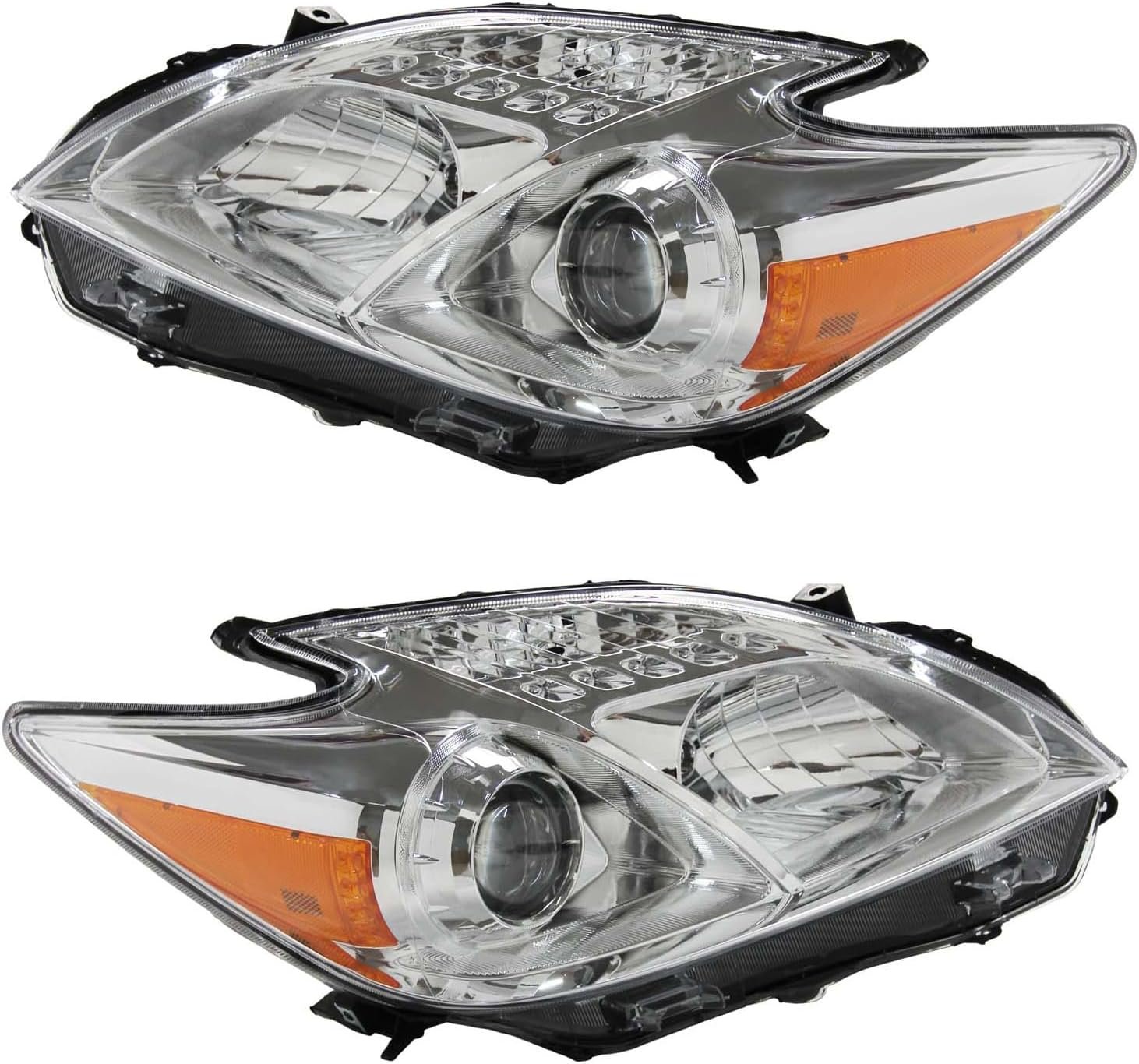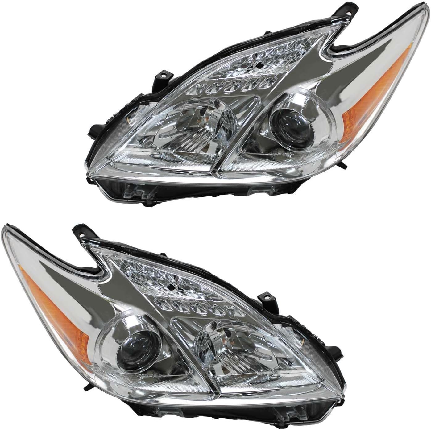 Faróis Prius 2012 2013 2014 2015, conjunto de farol adequado para Toyota Prius 2012-2015, substituição de farol de halogêneo, lado do passageiro, alojamento cromado, lente refletora âmbar transparente