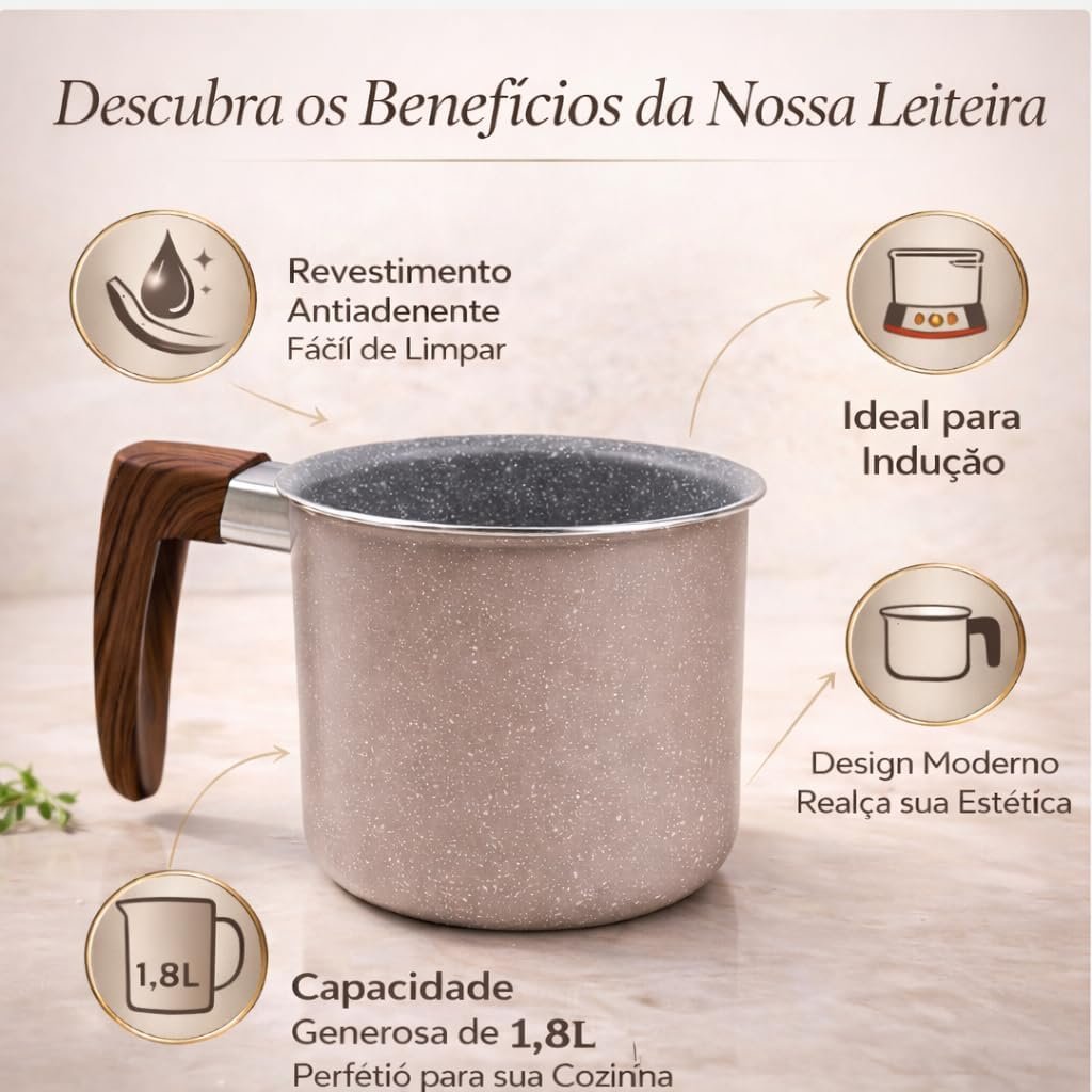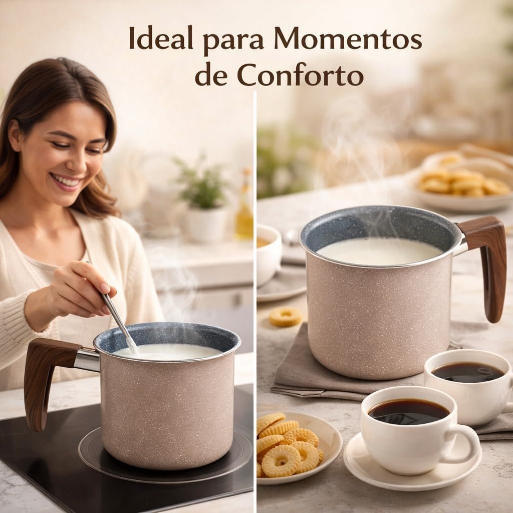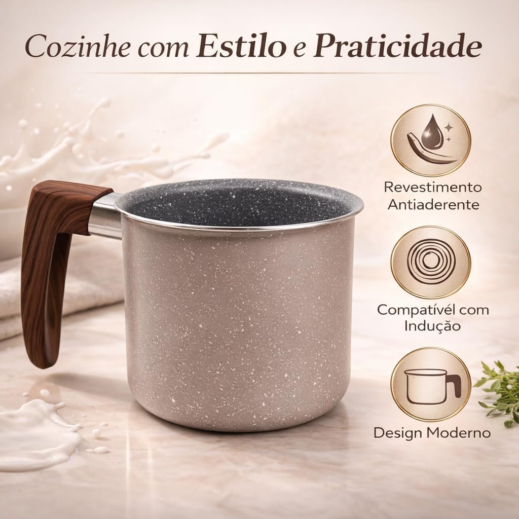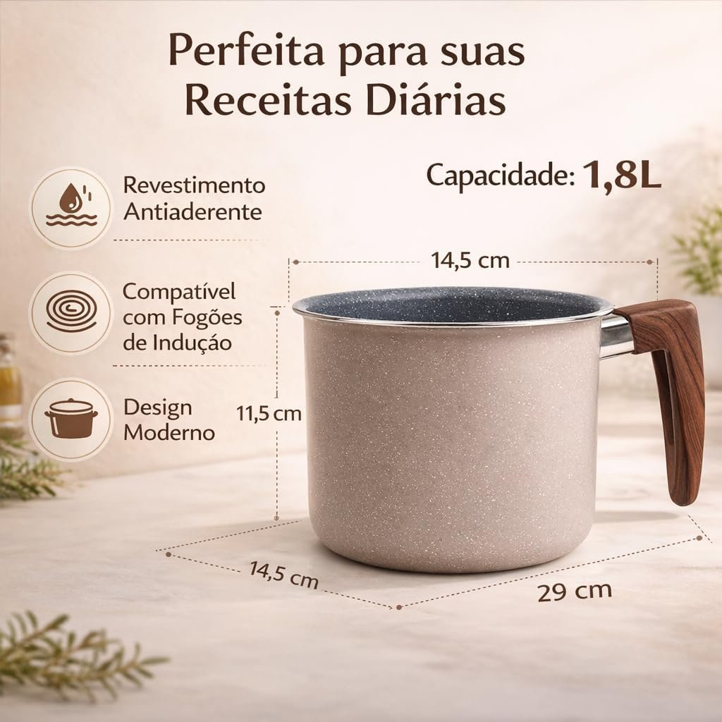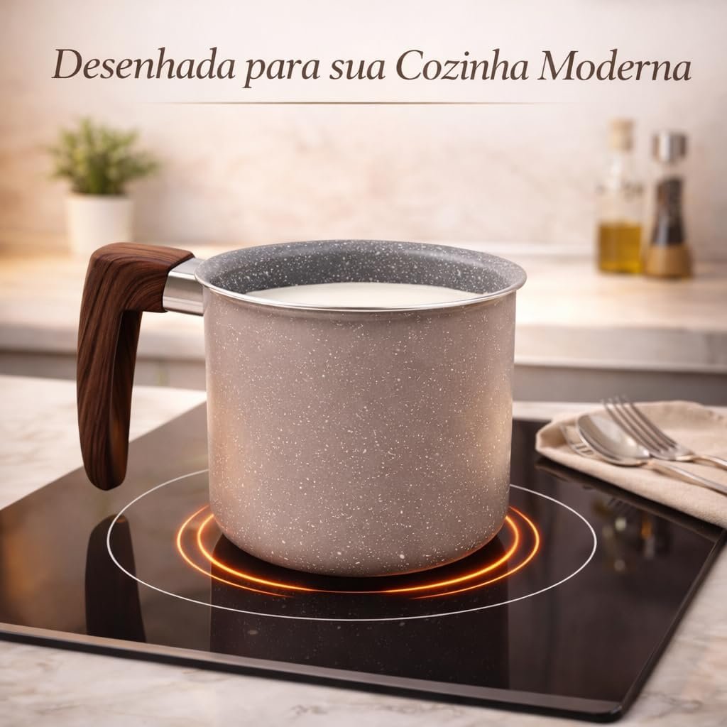 Fervedor 14cm com Indução | 1,8L | com Revestimento Antiaderente | Cabo Efeito Amadeirado | Design Granitado Bege
