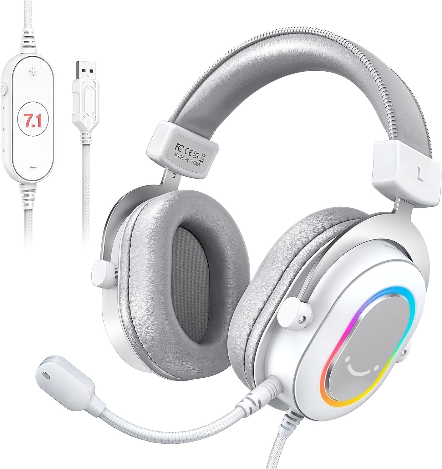 FIFINE USB Gaming Fone, fones de ouvido PC com fio com microfone para computador/laptop, over-ear RGB headset com som surround 7.1, cancelamento de ruído para streaming de vídeo game – H6 branco