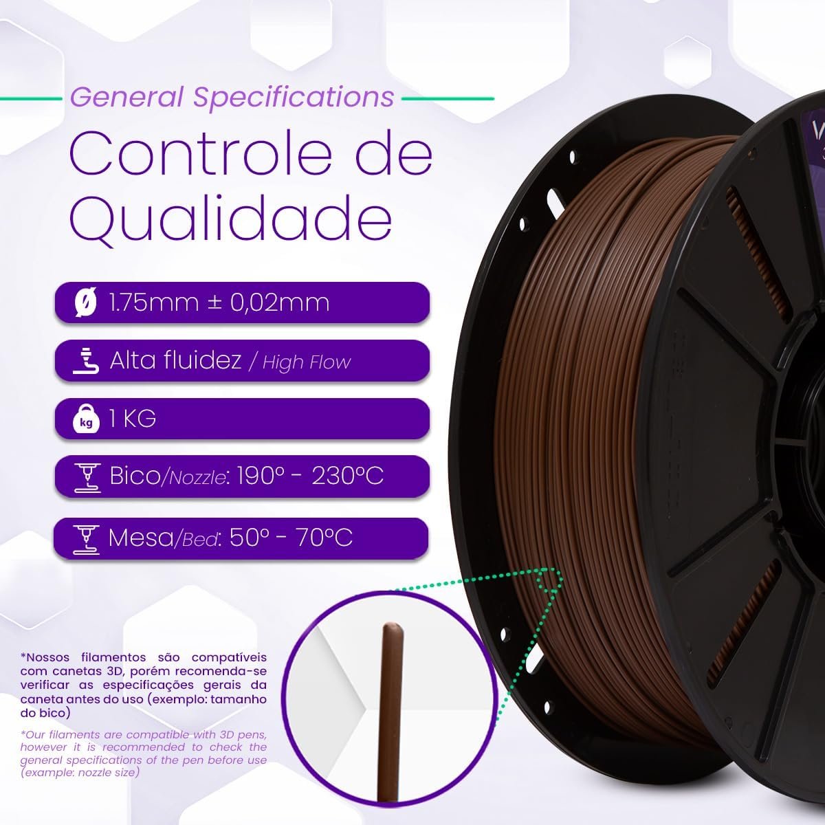 Título do Produto: Filamento PLA Velvet Marrom Velvet Premium 1Kg – Efeito Fosco – Voolt3D Oficial (Marrom Velvet)