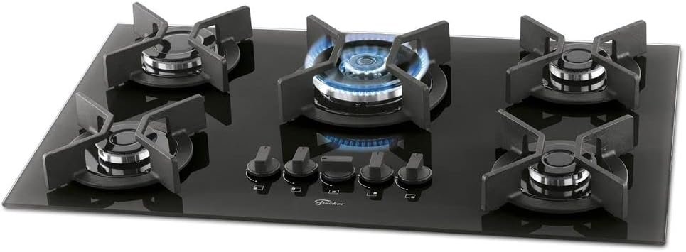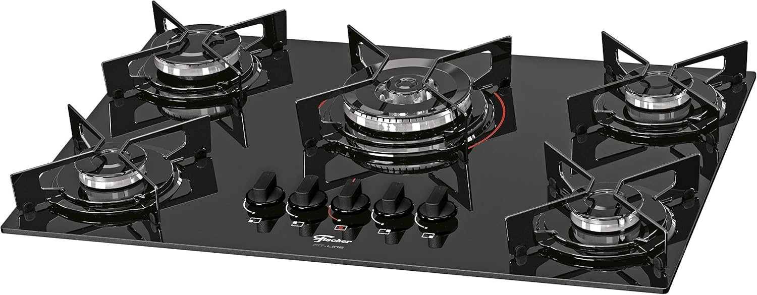 FISCHER COOKTOP À GÁS 5 BOCAS TRIPLA CHAMA FIT LINE MESA VIDRO PRETO BIVOLT – 26300-57079