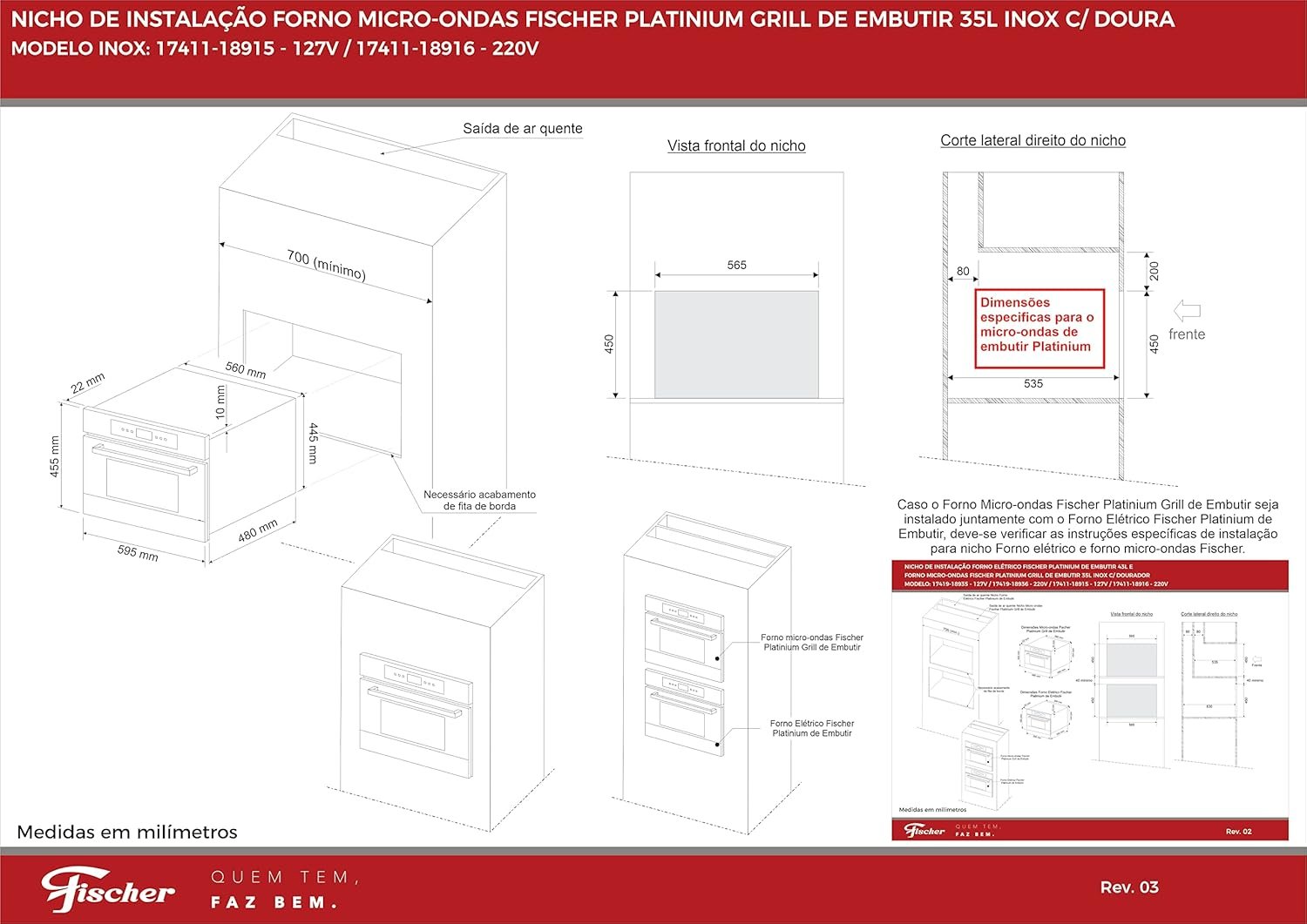FISCHER FORNO MICRO-ONDAS EMBUTIR PLATINIUM GRILL 35L INOX 220V – 17411-18916