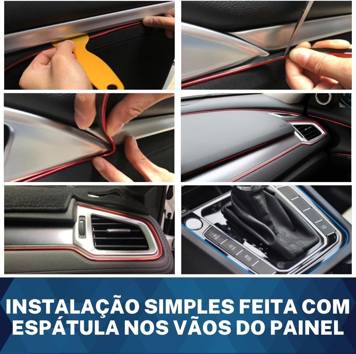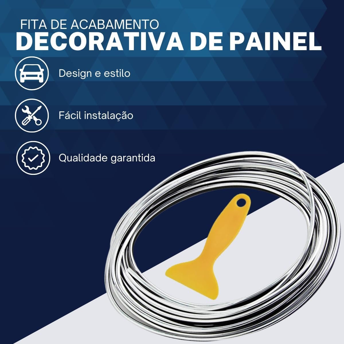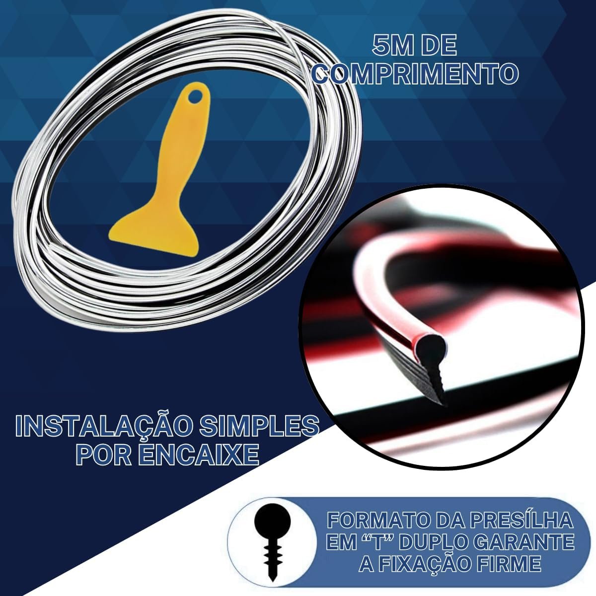 Fita Friso Decorativo para Painel Interno de Carro 5m Flexível Universal com Espátula Acabamento Premium Automotivo (Cromado)