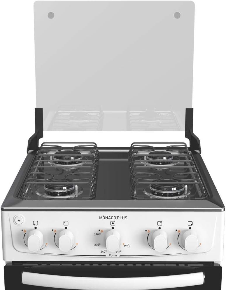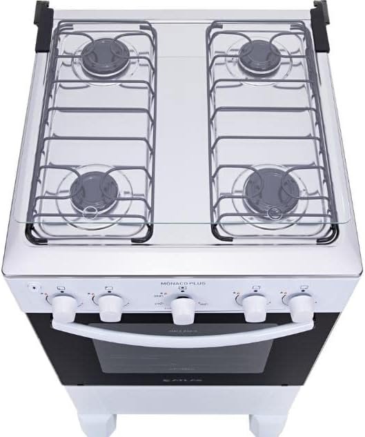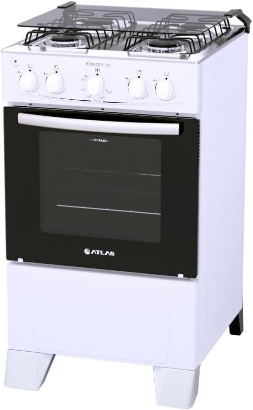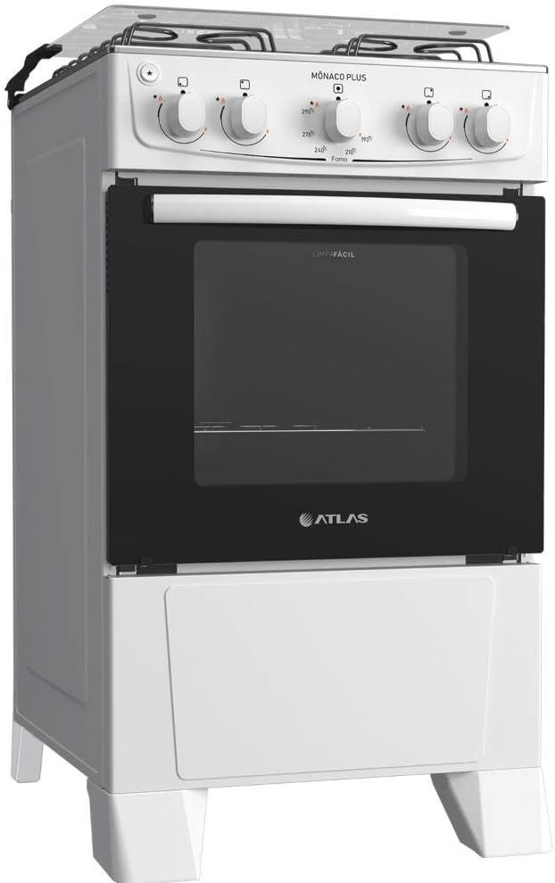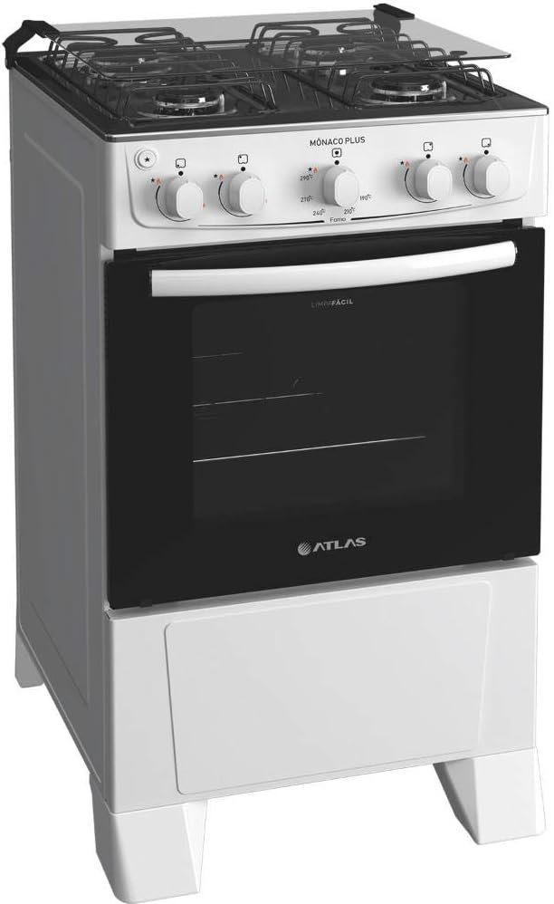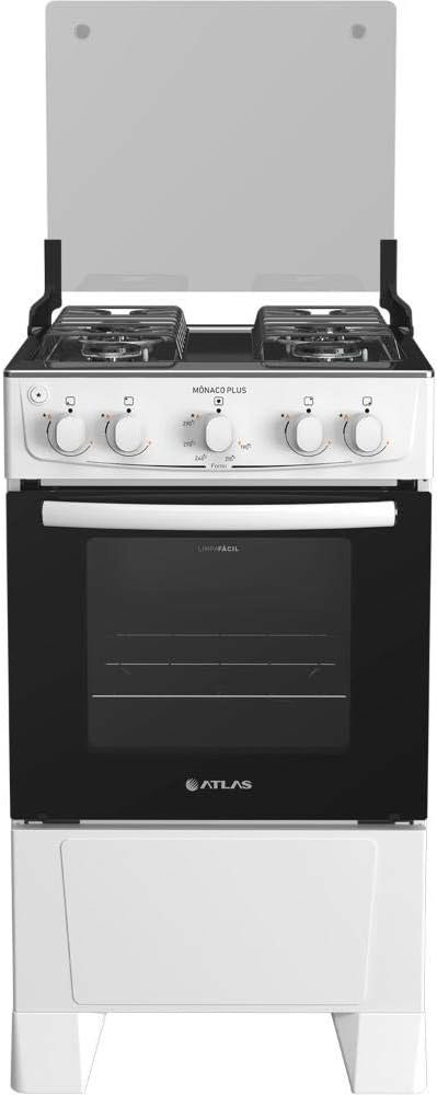 Fogão 4 bocas Atlas Mônaco Plus Branco Mesa inox e acendimento automático