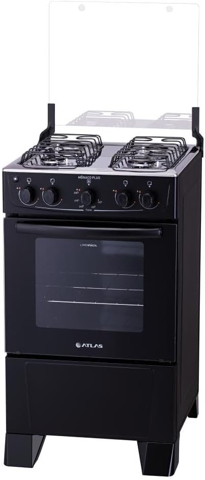 Fogão 4 bocas Atlas Mônaco Plus Preto com Acendimento Automático e Mesa Inox