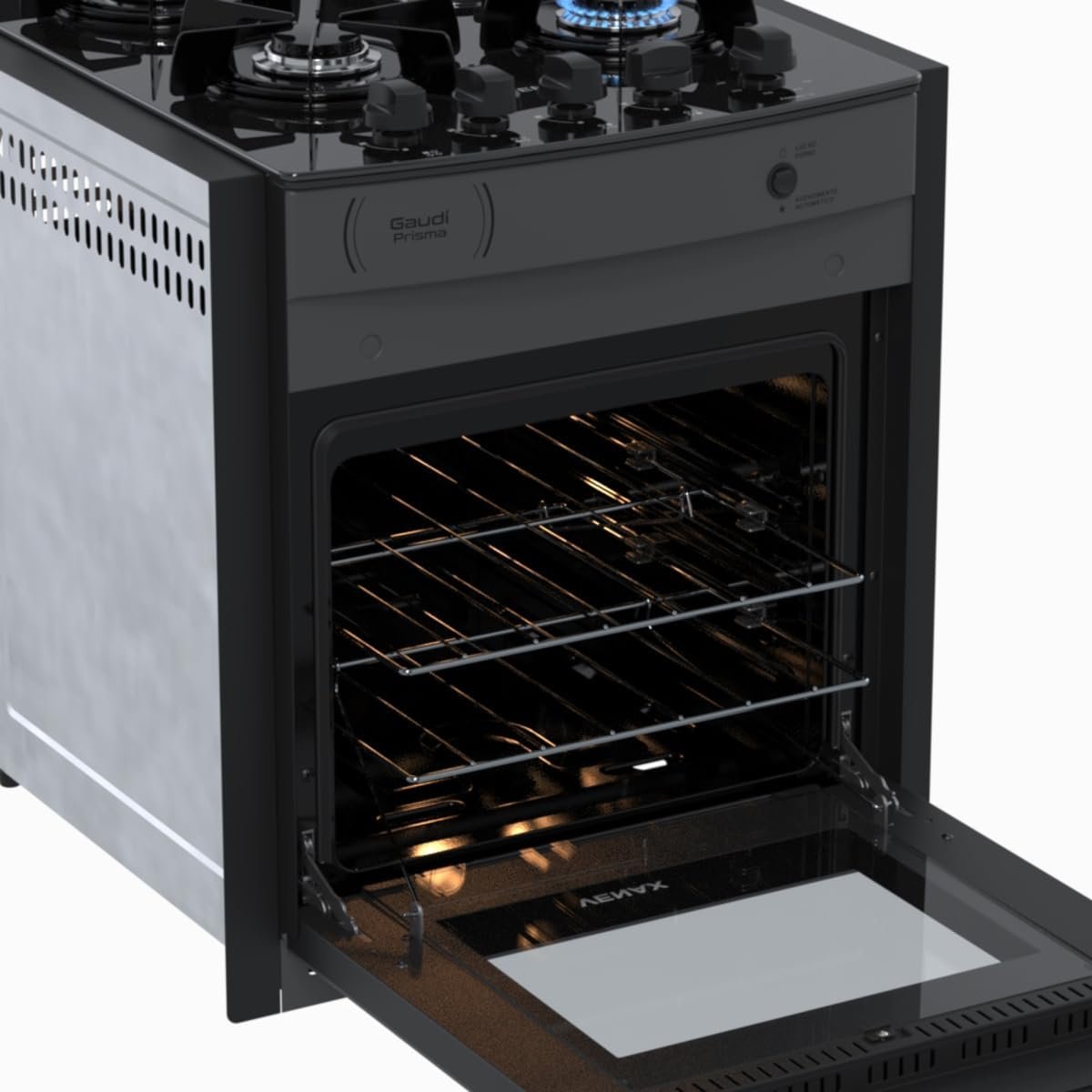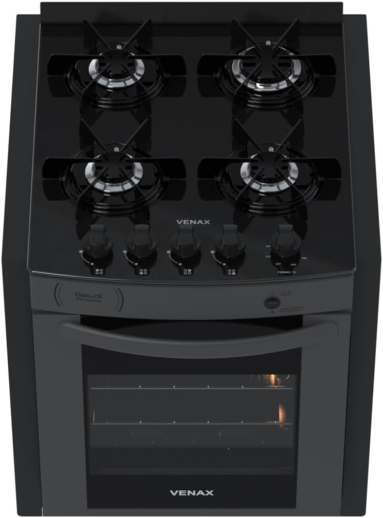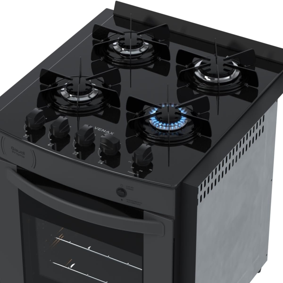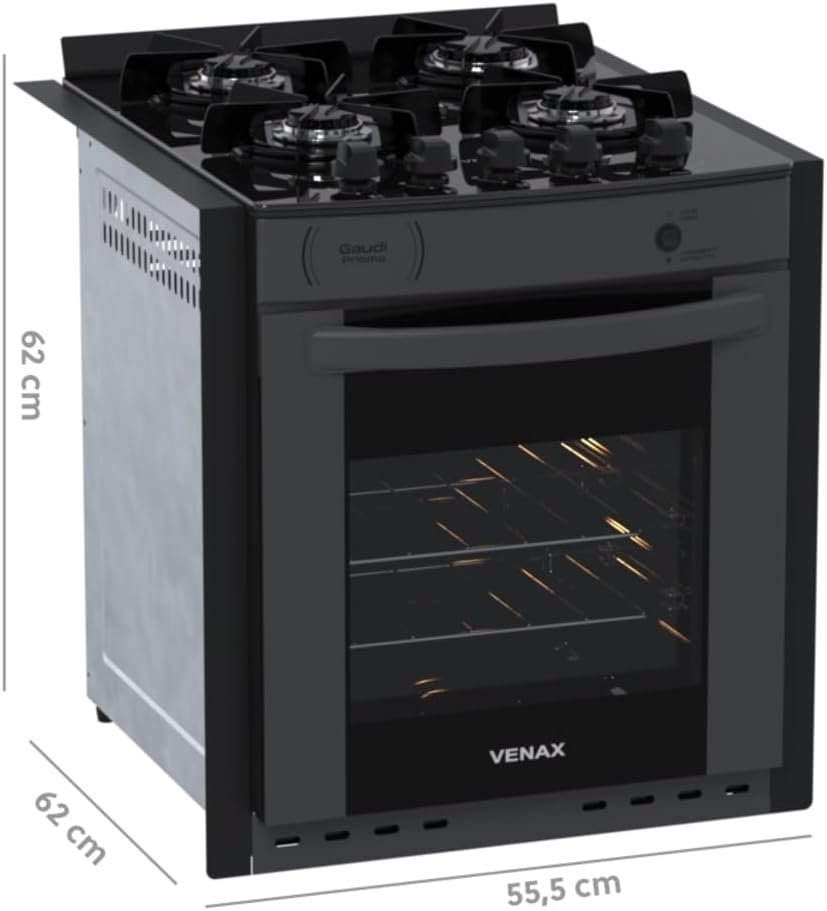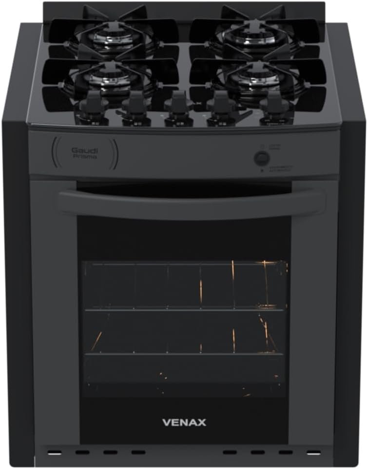 Fogao de Embutir 4 Bocas Venax Gaudi Prisma Vitreo Bl Grafite Gas Glp