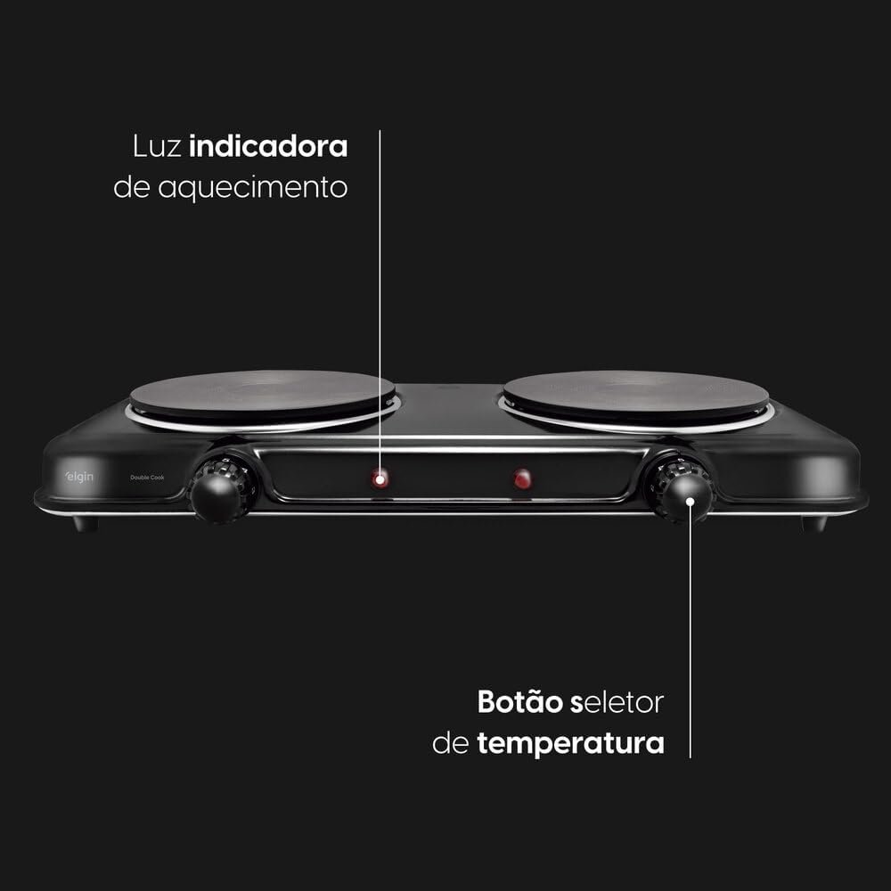 Fogão Elétrico Portátil Cooktop Elgin Double Cook 2 Bocas – 110VFogão Elétrico Portátil Cooktop Elgin Double Cook 2 Bocas – 110V
