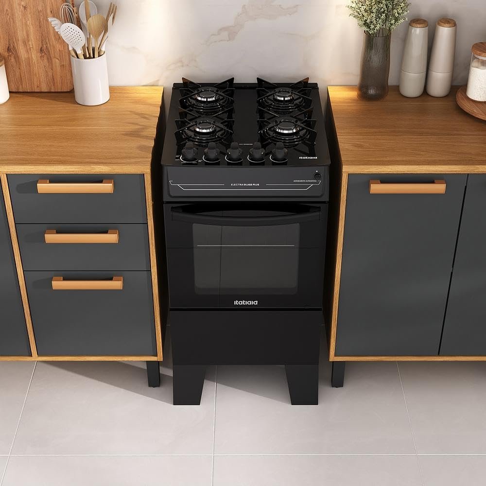 Fogão Itatiaia 4 Bocas Electra Glass Plus Preto Bivolt