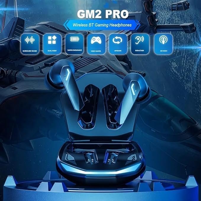Fones de ouvido sem fio BT para jogos,Fones de ouvido para jogos GM2 Pro BT Fones de ouvido sem fio BT 5.3 360° Surround Dual Mode Som Cancelamento de ruído PRETO