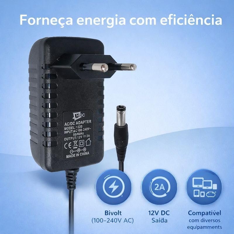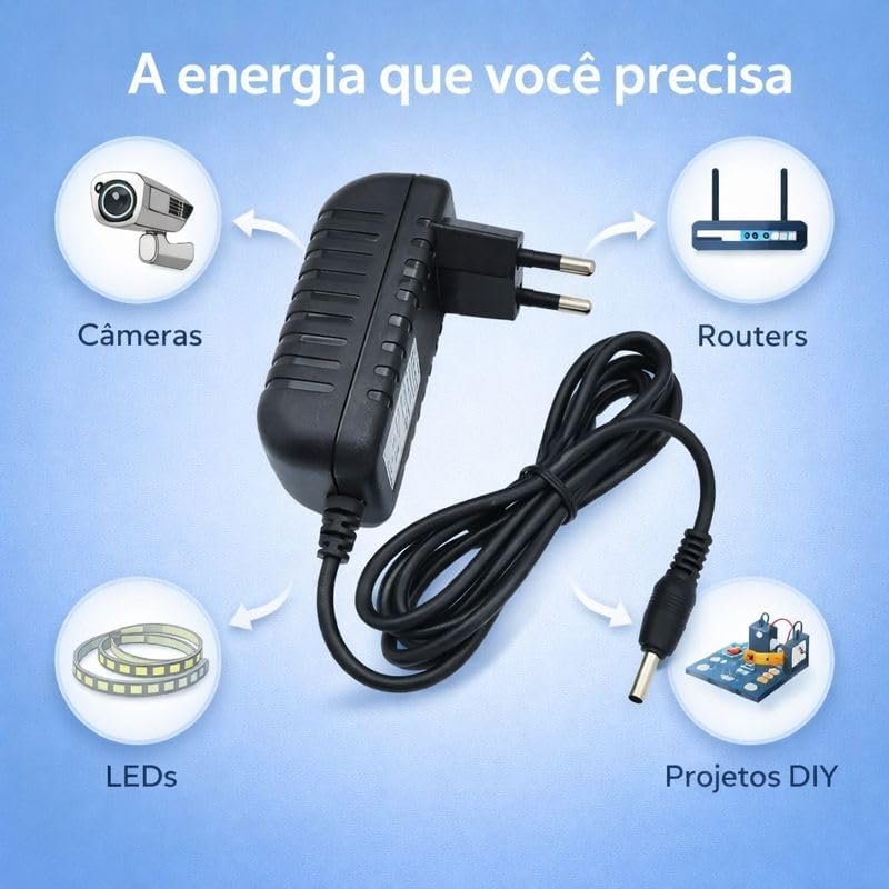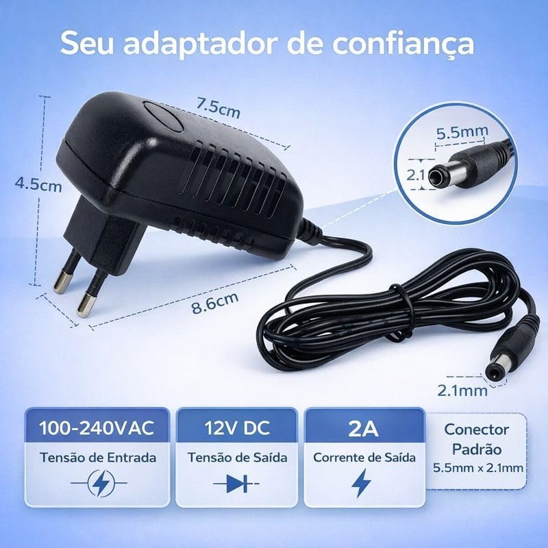 Fonte de Alimentação Estabilizada 12V 2A Bivolt 110/220V AC/DC com Plug P4 – Adaptador para Modem, Roteador e Eletrônicos PREMIUM