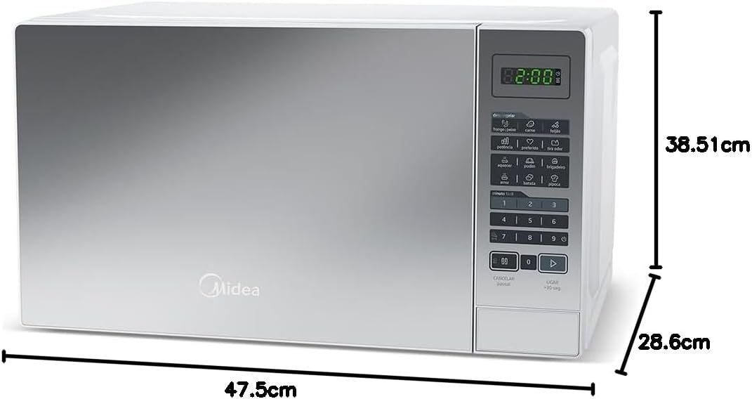 Forno Micro-ondas 20L Branco Espelhado Midea 127V MRAM21Forno Micro-ondas 20L Branco Espelhado Midea 127V MRAM21