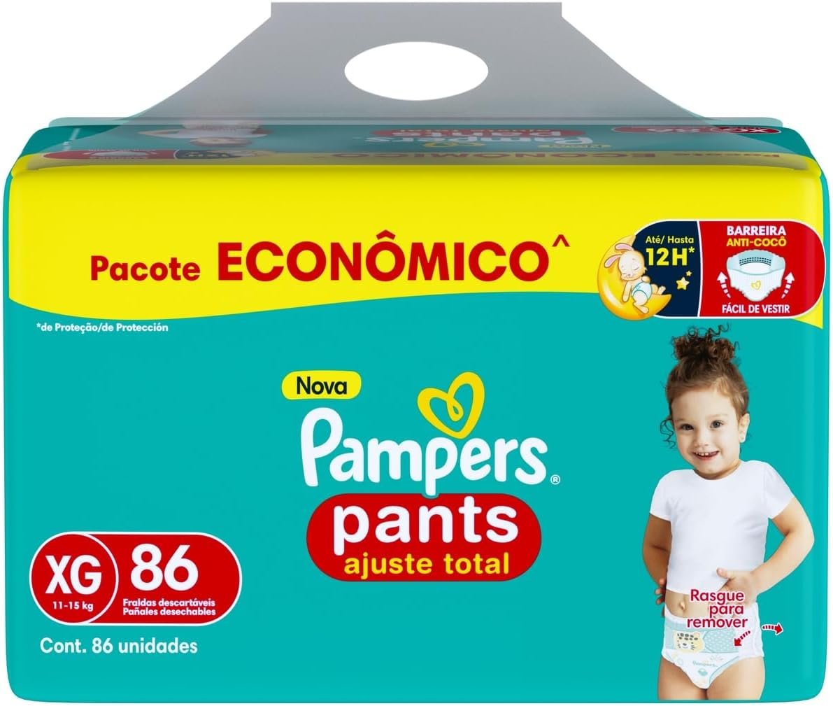 Fralda Pampers Pants Ajuste Total tamanho XG, Fácil de Vestir, 86 Unidades