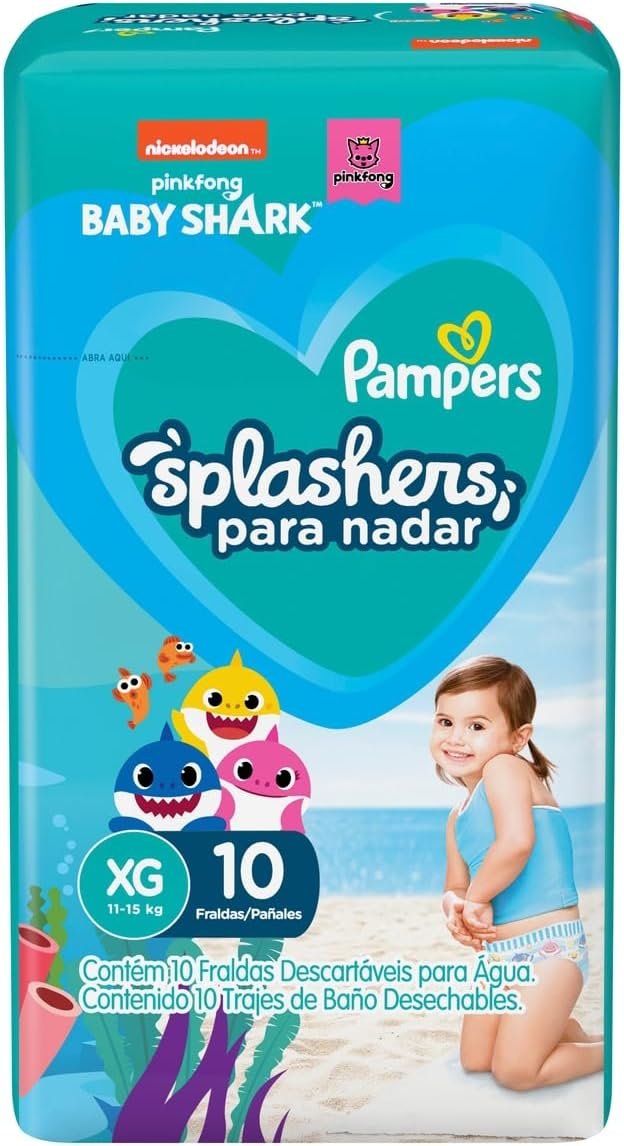 Fralda Pampers Splashers Para Nadar Baby Shark Tamanho XG 10 Unidades