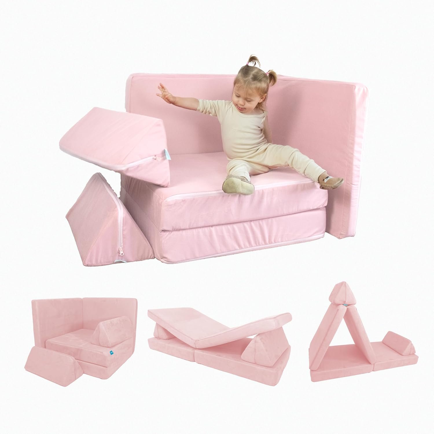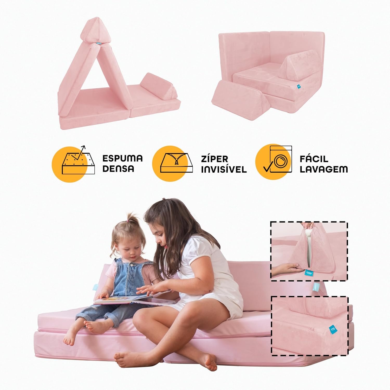 Freso Baby Soft Play Sofá de Brincar Infantil Montessori Rosa, Sofá Modular 4 Peças, Fácil Montagem, Macio e Maleável, Método Montessoriano para Estimular Desenvolvimento Infantil