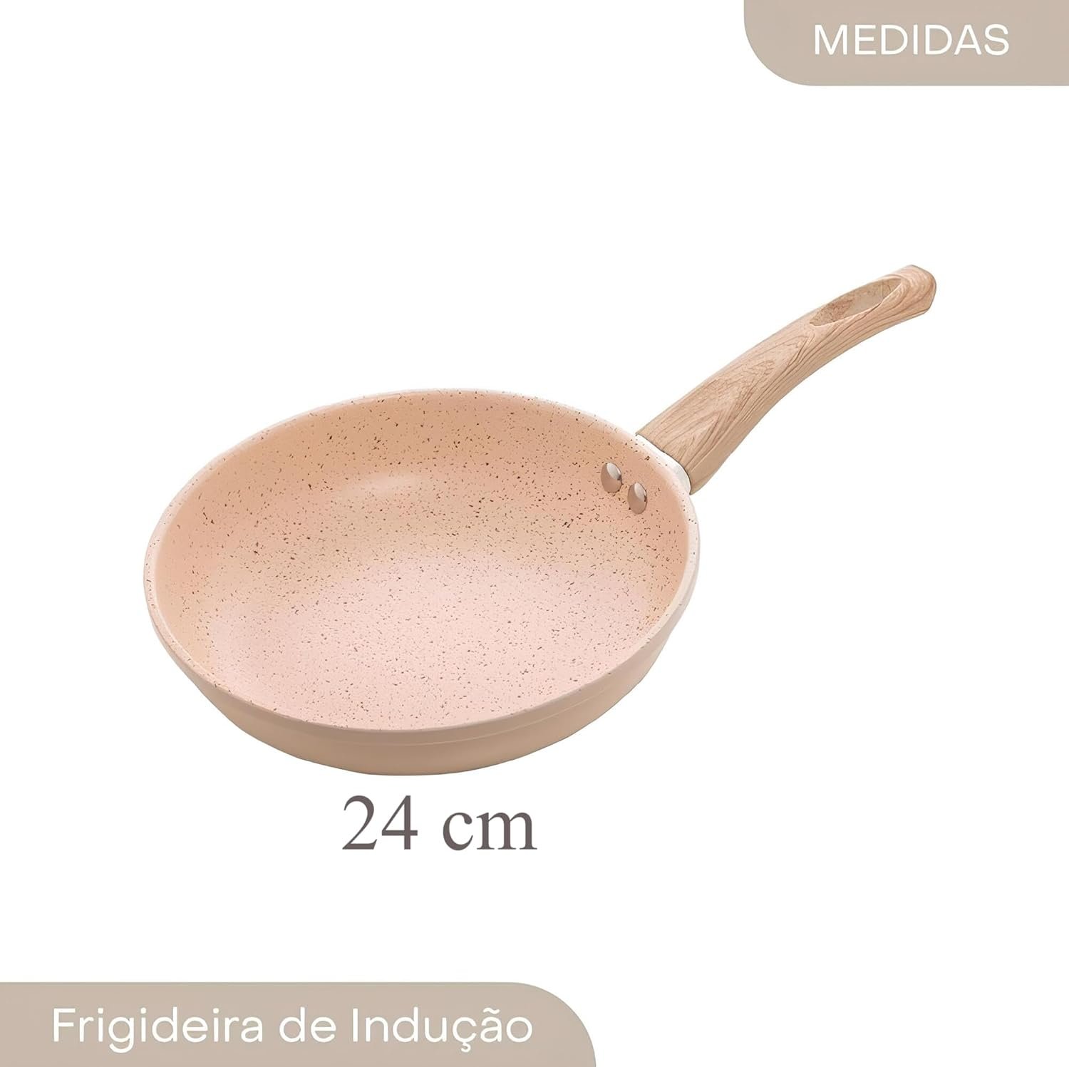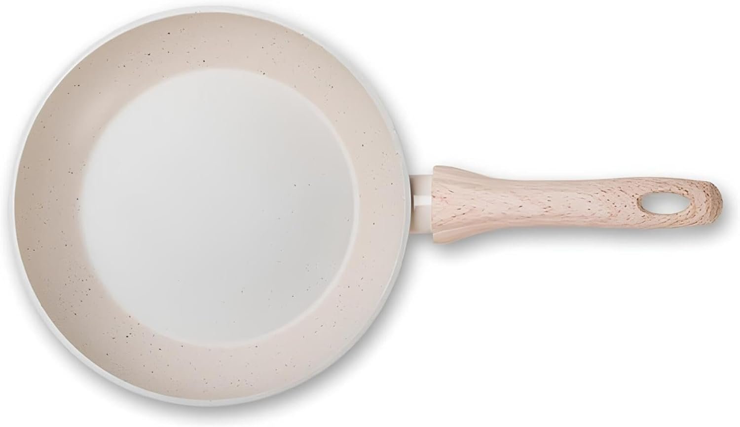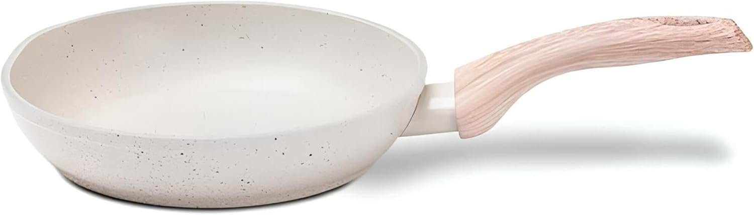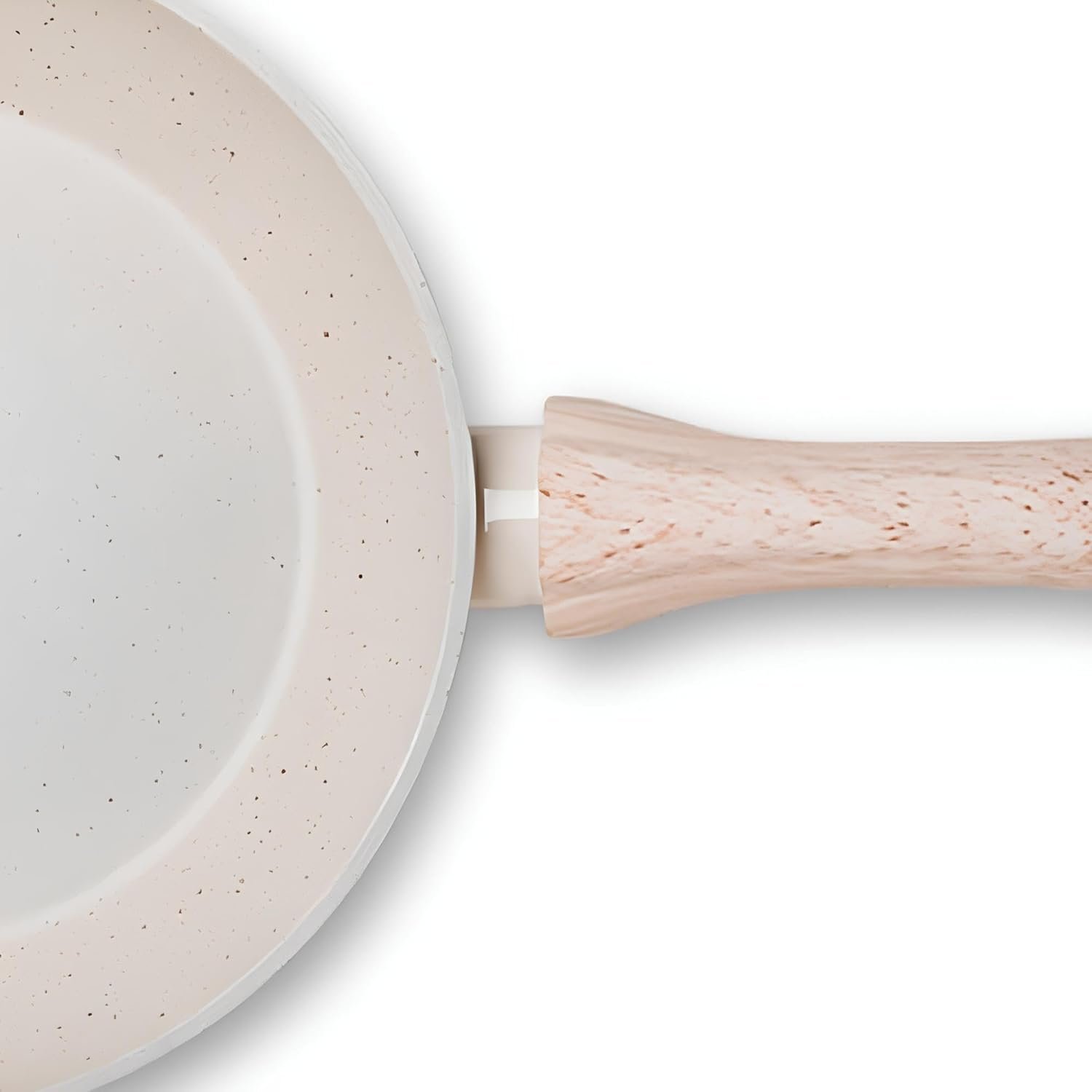 Frigideira de Cerâmica Antiaderente Premium Grande com Cabo Efeito Madeira, Fundo para Indução, Compatível com Fogão a Gás e Elétrico, Cozinha Saudável, Frita Sem Óleo, Alta Durabilidade Bege