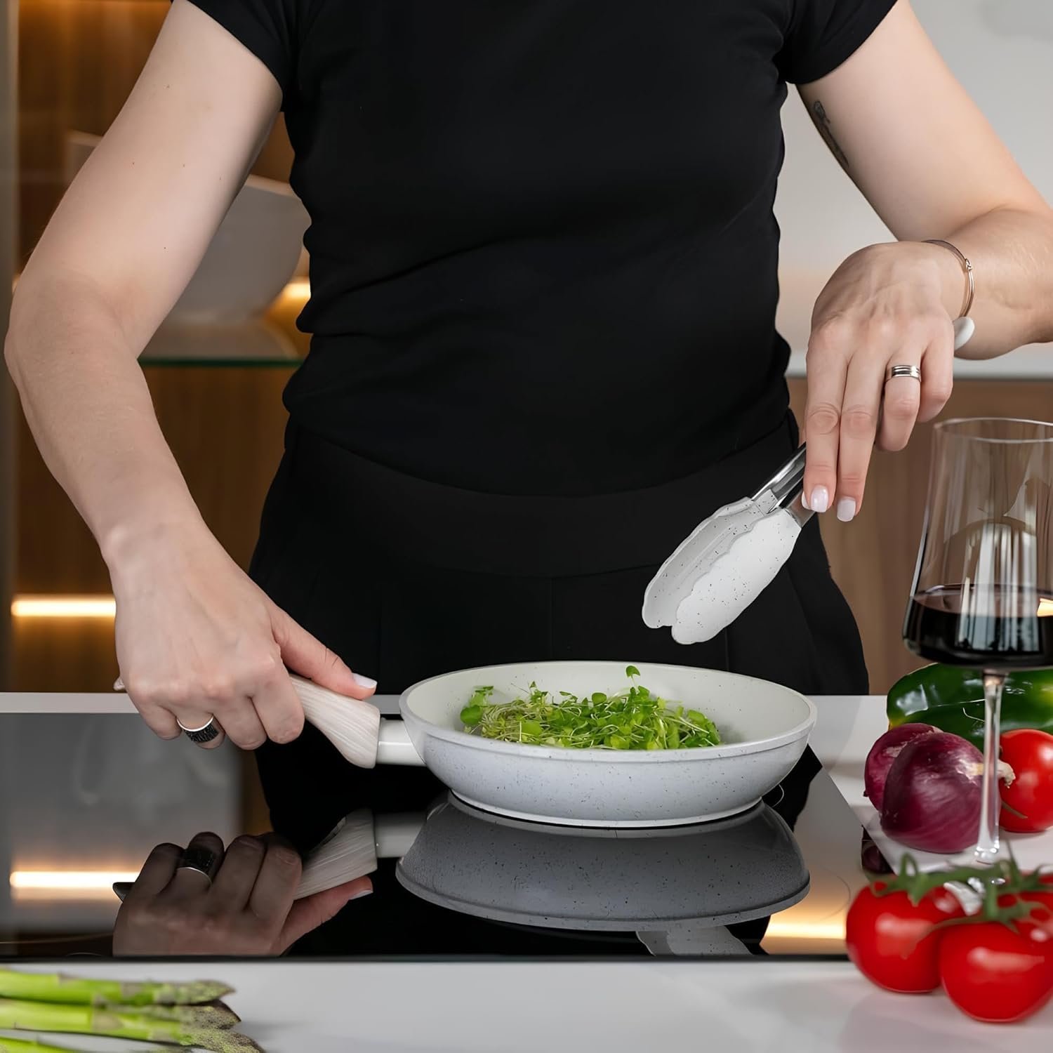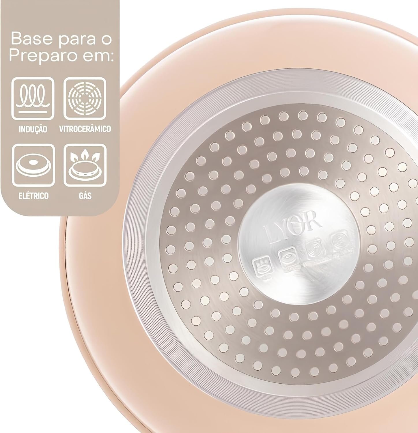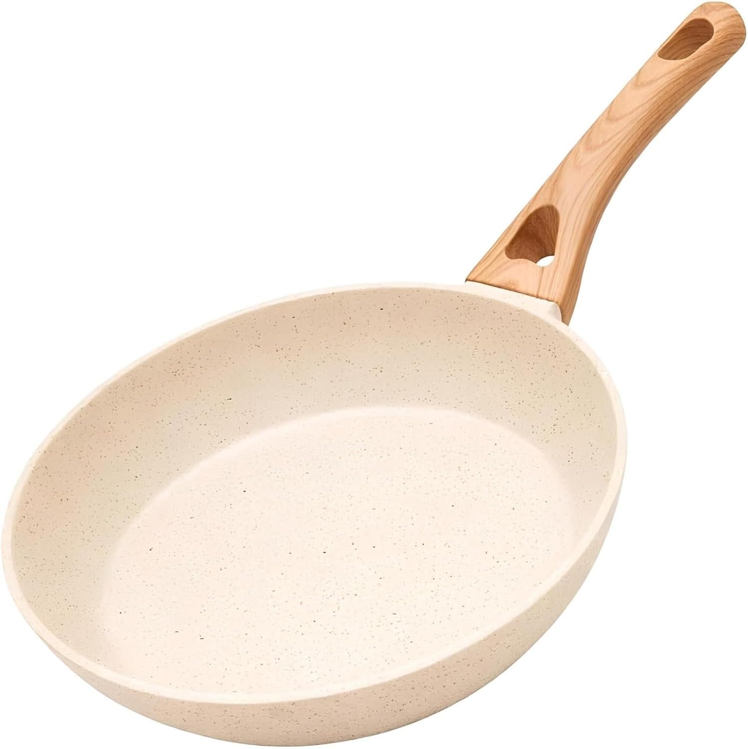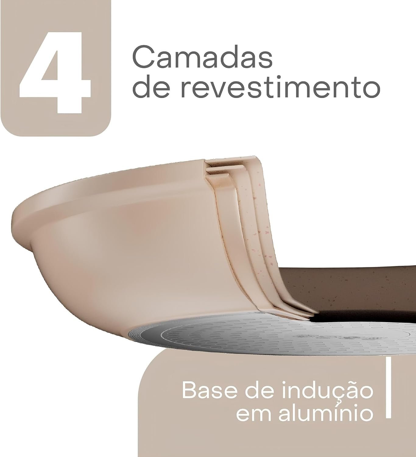 Frigideira de Cerâmica Antiaderente Premium Grande com Cabo Efeito Madeira, Fundo para Indução, Compatível com Fogão a Gás e Elétrico, Cozinha Saudável, Frita Sem Óleo, Alta Durabilidade Bege