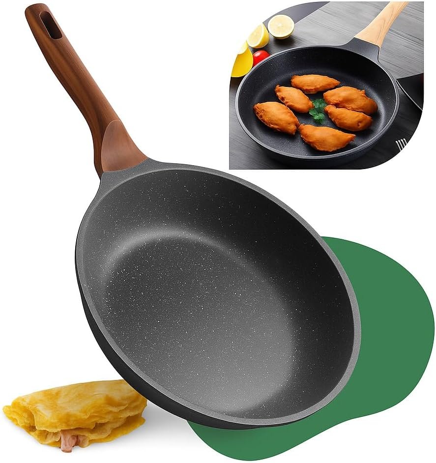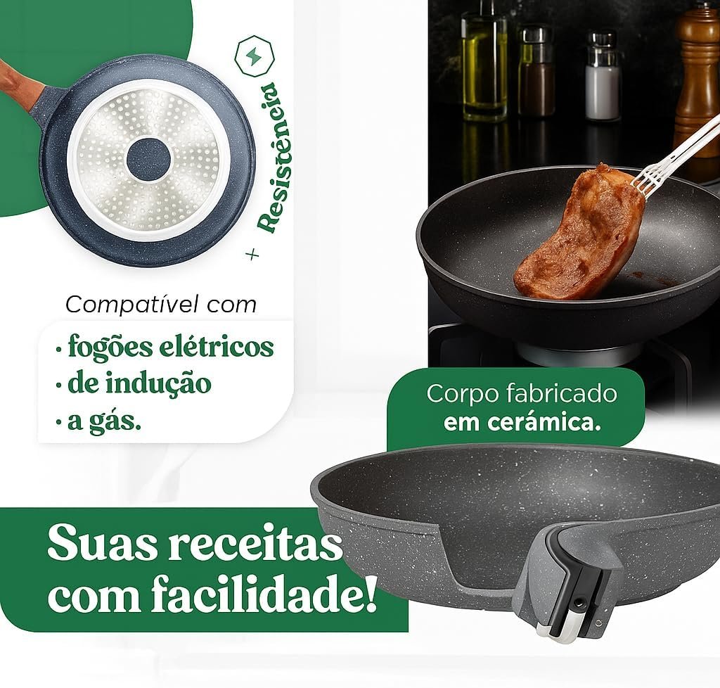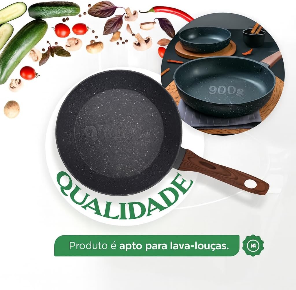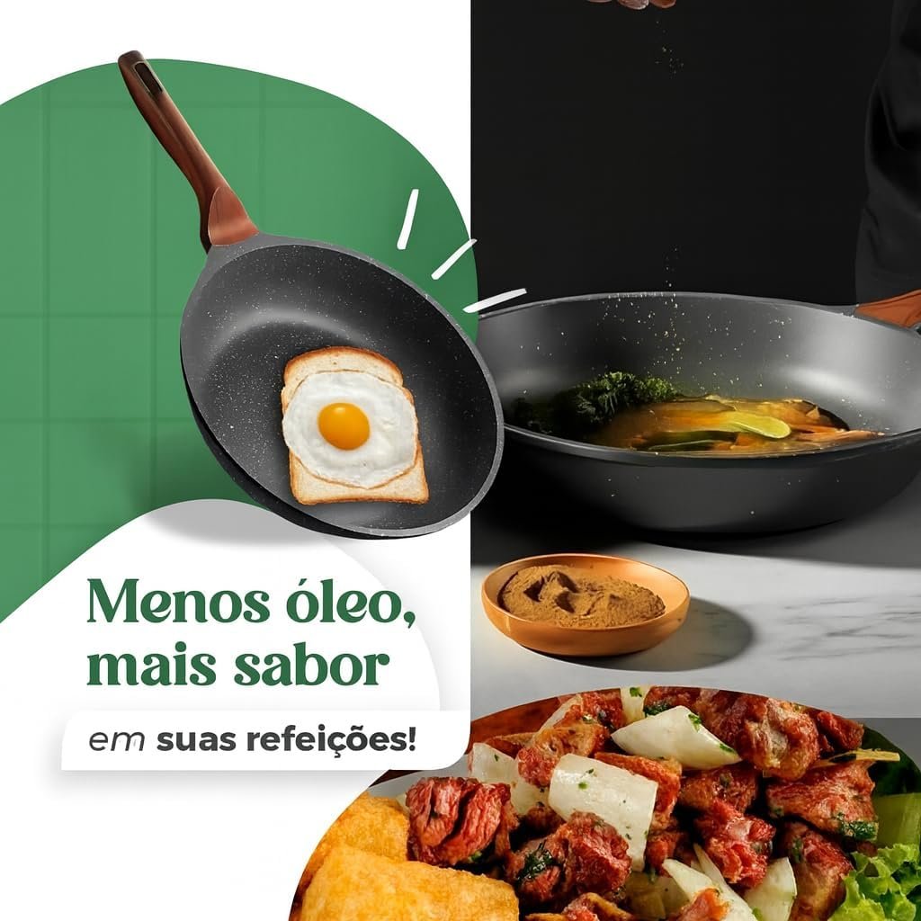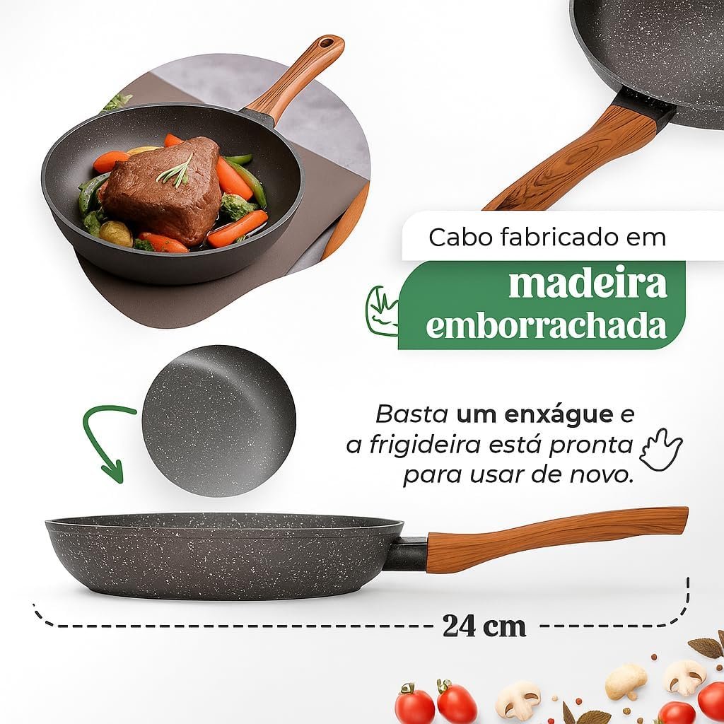 Título do Produto: Frigideira Grande 24cm Em Cerâmica Cabo De Madeira Fundo Indução Fogão a Gás Elétrico e Indução Saudável Frita Sem Usar Óleo Durável Premium