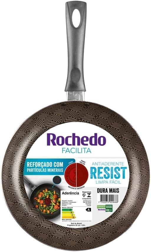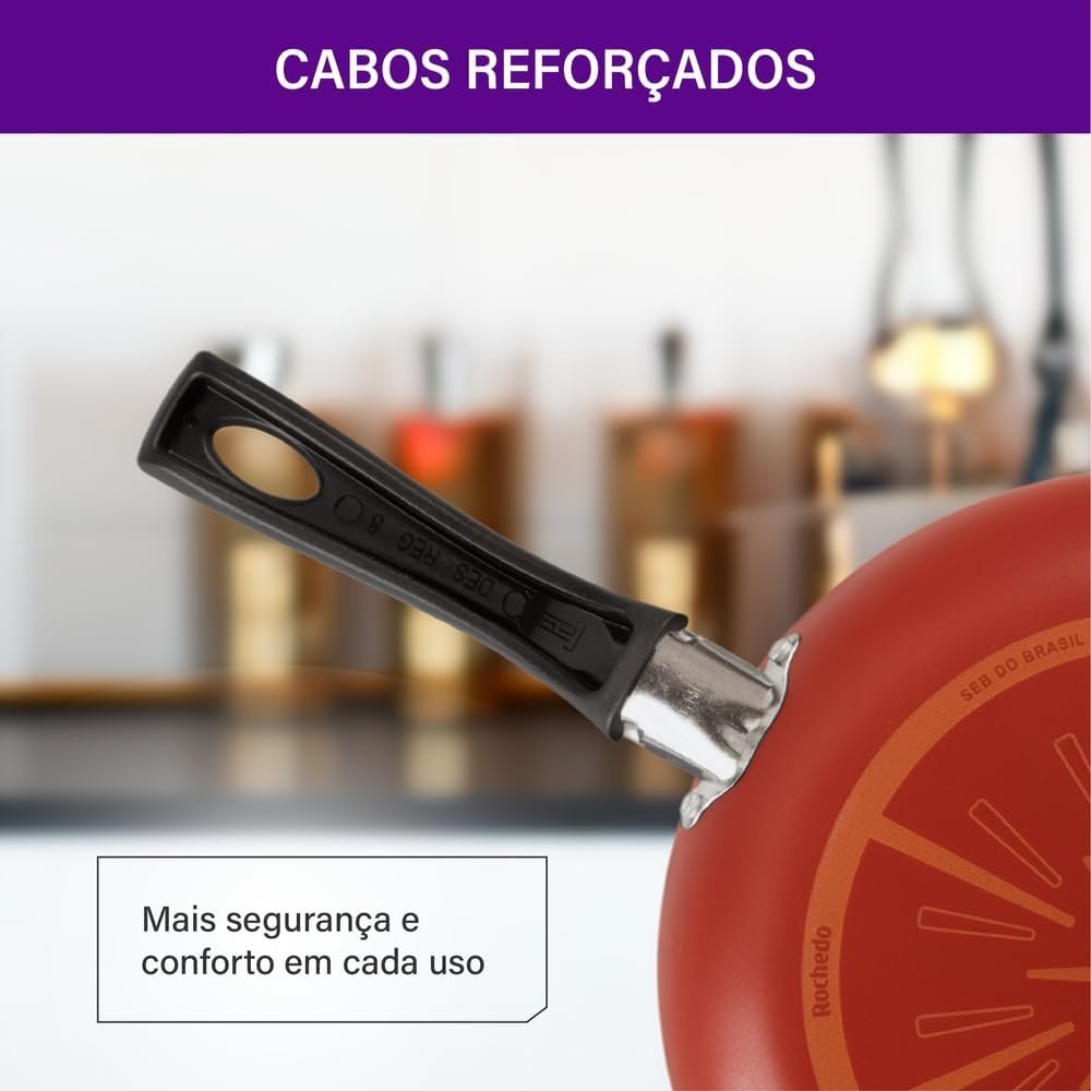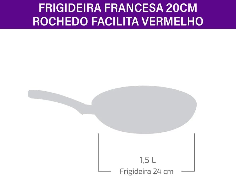 Frigideira Rochedo Facilita Vermelho 20cm com Antiaderente Resist – Limpa Fácil e Dura Mais, reforçado com partículas minerais, Thermo-Sinal e Cabos Reforçados
