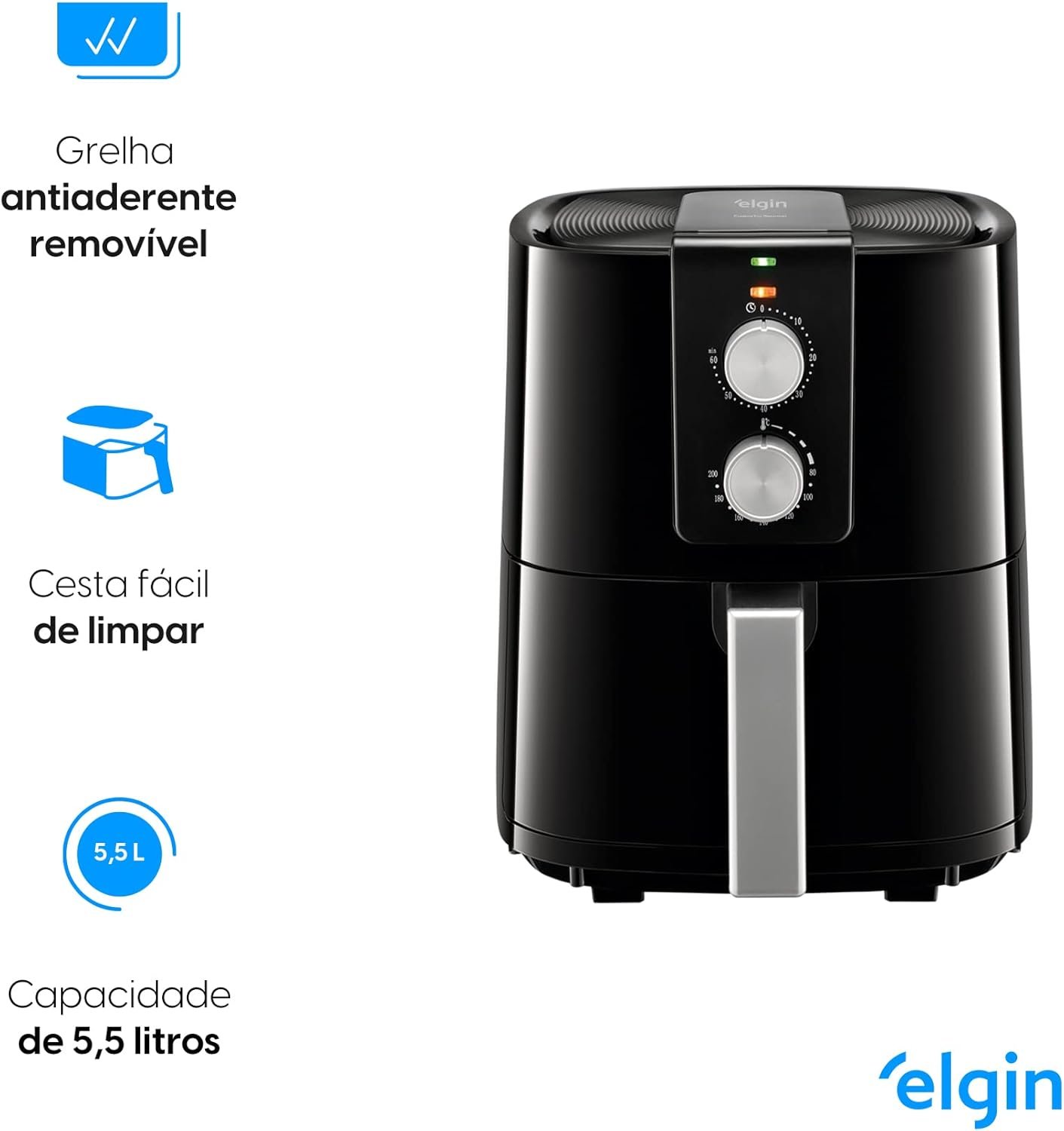 A Fritadeira Elétrica Cuisine Fry Gourmet Elgin de 5,5 litros, na elegante cor preta, é a solução perfeita para preparar alimentos crocantes e deliciosos de forma mais saudável. Com a cesta removível, facilita a limpeza e proporciona praticidade no dia a dia. Ideal para quem busca uma alimentação equilibrada sem abrir mão do sabor!